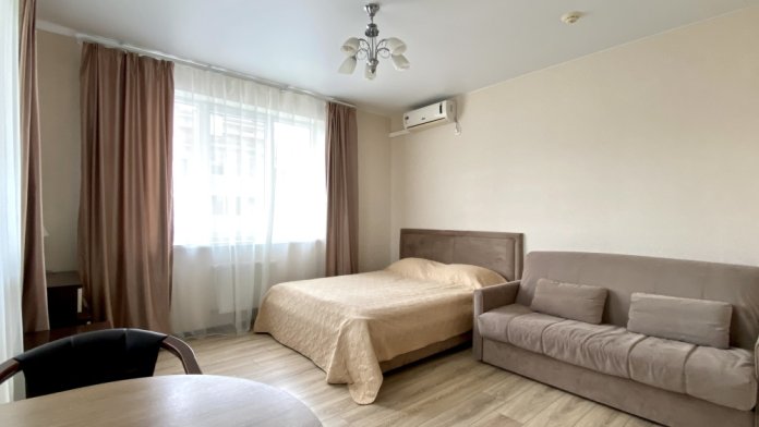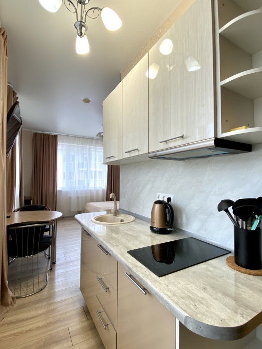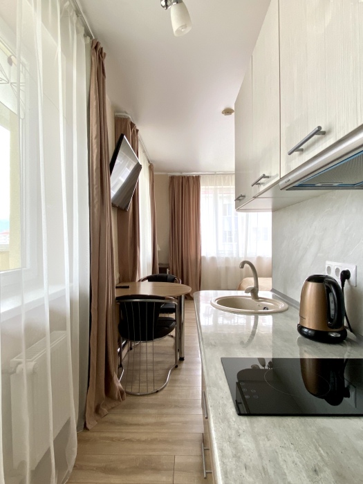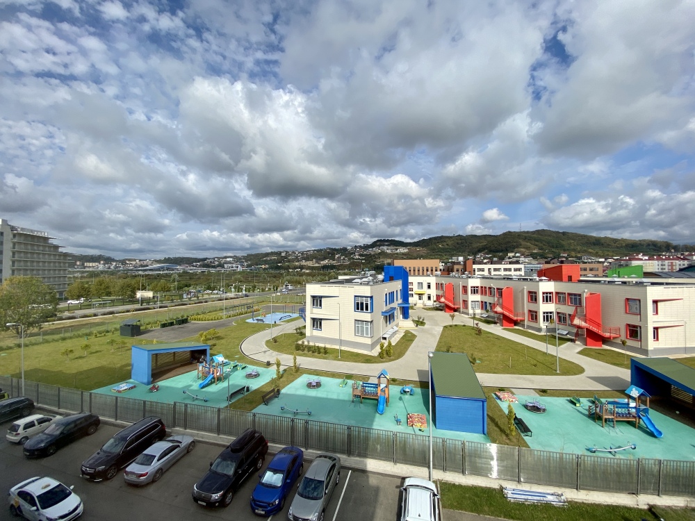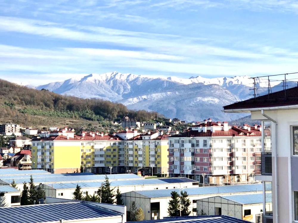 Апартаменты-студия в Сириусе с видовым балконом на горы в жилом комплексе «Александровский сад» 37м2 кухней.