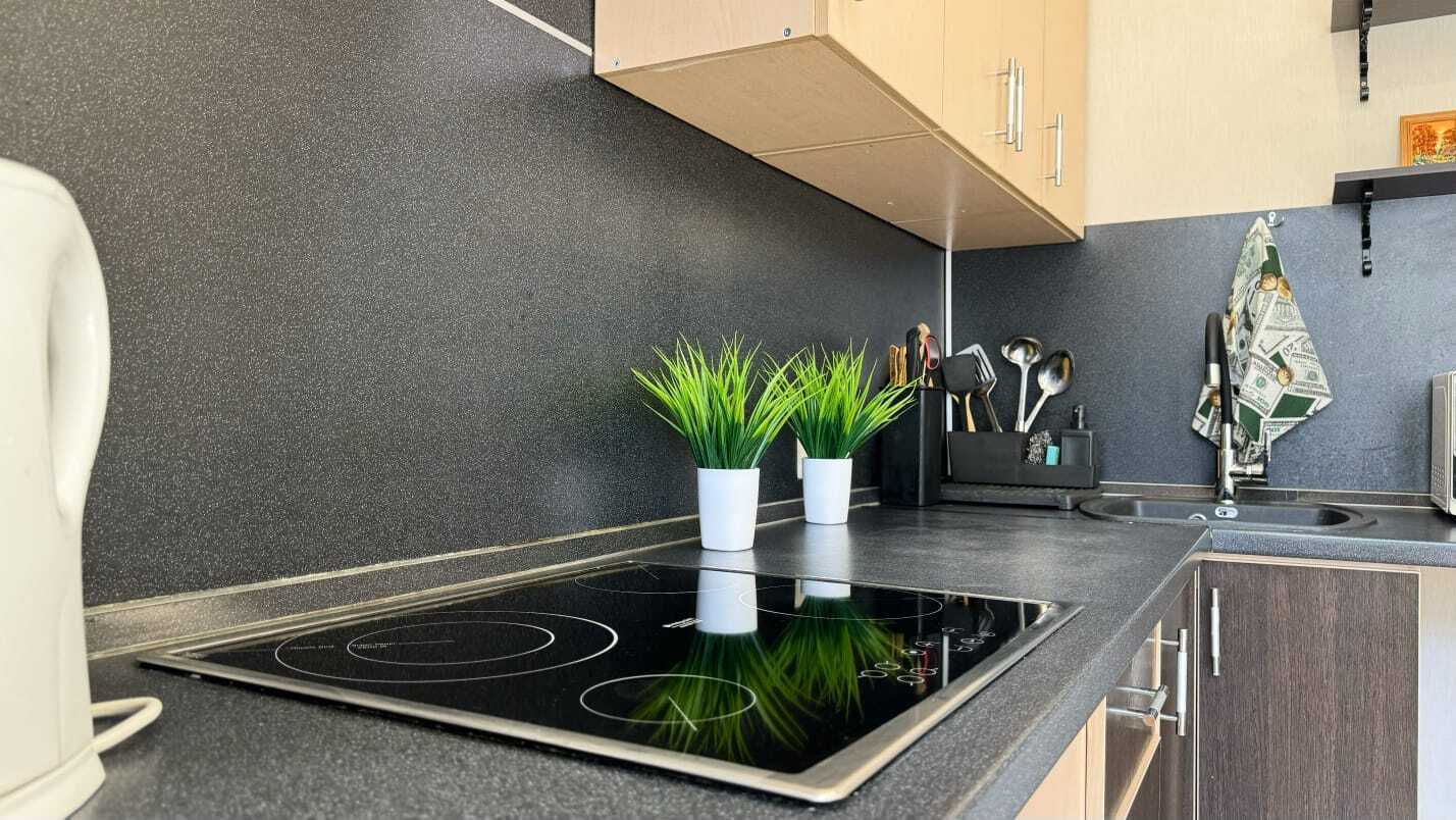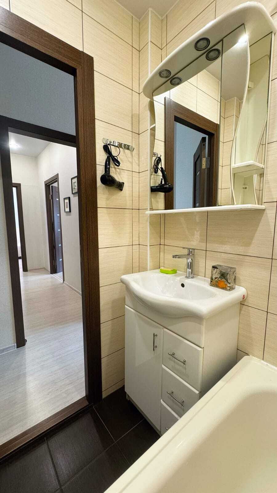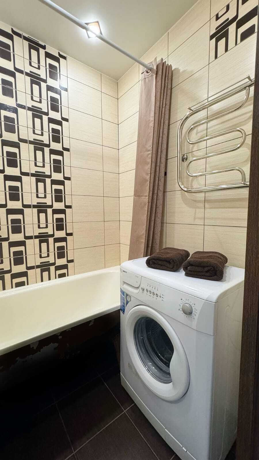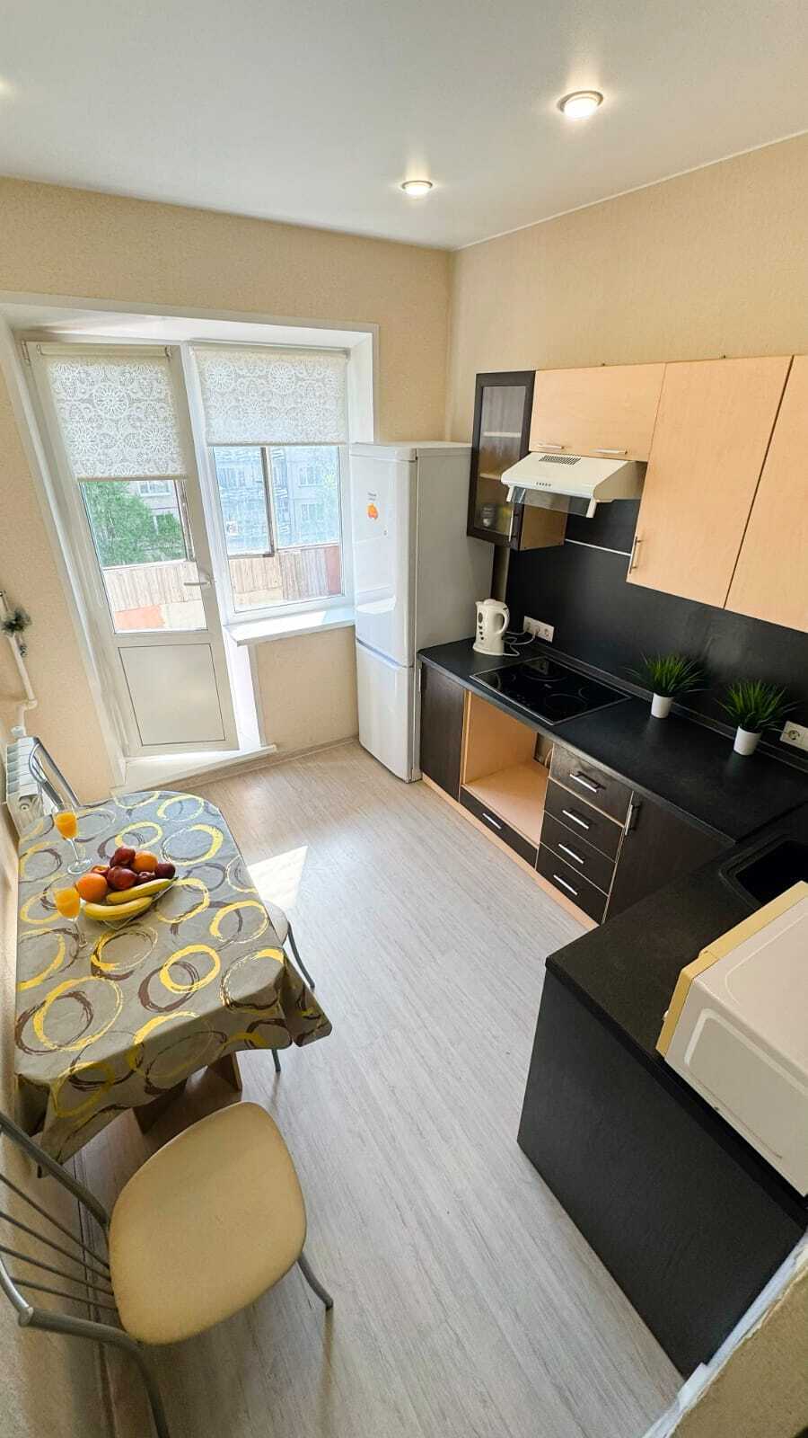 В квартире есть всё необходимое для комфортного проживания. Для Вашего удобства в каждой комнате установлены ТВ. На окнах плотные занавески, не пропускающие свет.