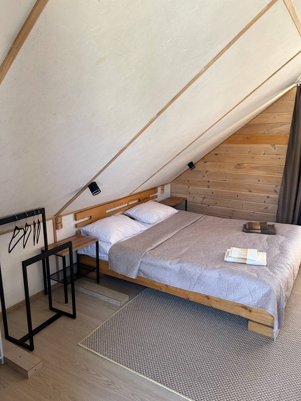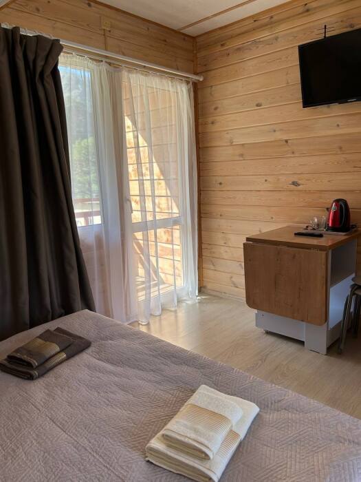 На территории расположены три дома, в каждом по четыре номера. На первых этажах находятся Семейные номера (размещение до 4-х человек), на вторых этажах 2-местные номера с балконом.