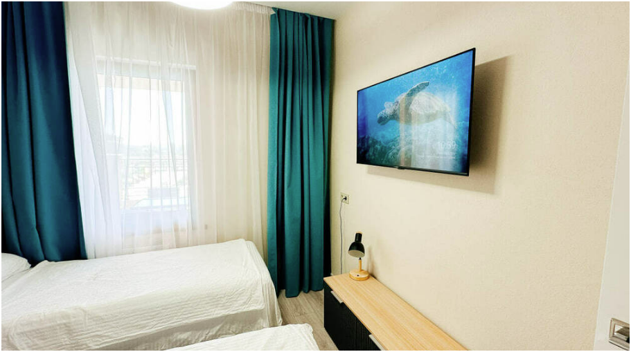 2 cпальня: 2 oдноcпальных кровати, ТВ, кондиционер.