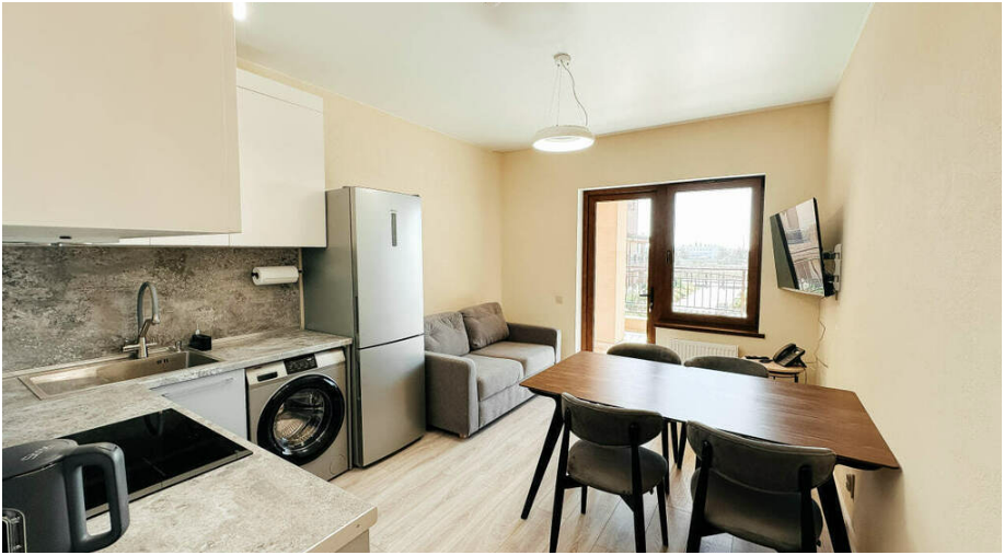 - Входит в стоимость: подогреваемый бассейн, закрытая парковка, спорт и детские площадки на территории, круглосуточная охрана, видеонаблюдение.