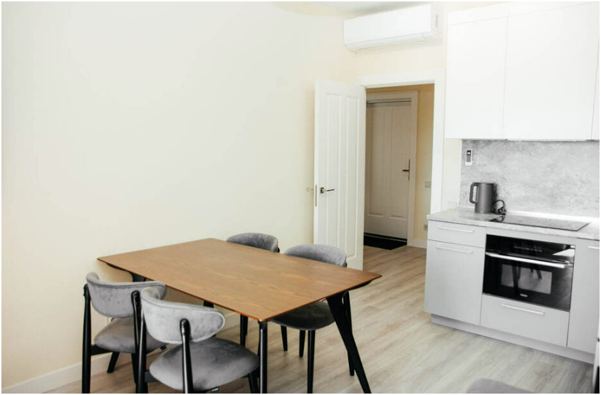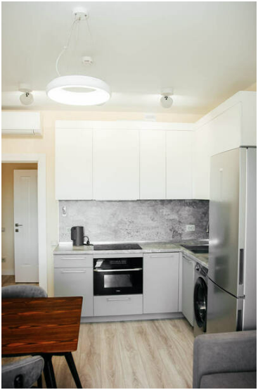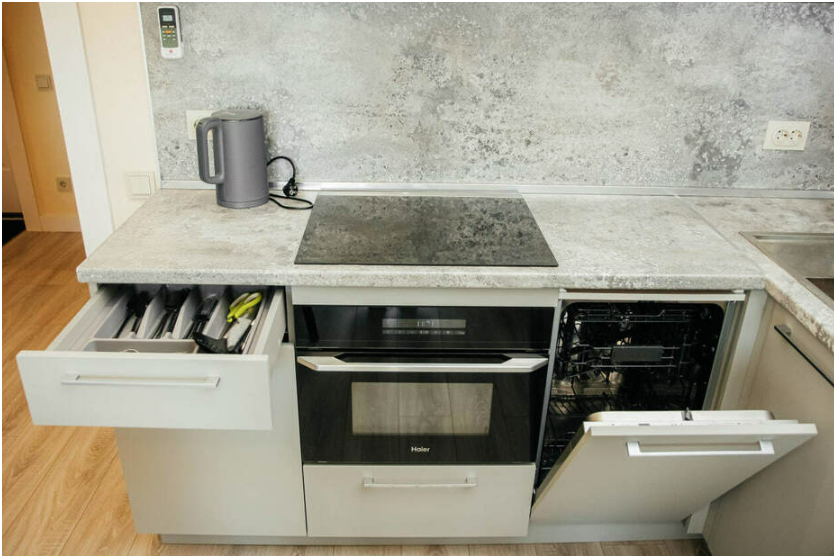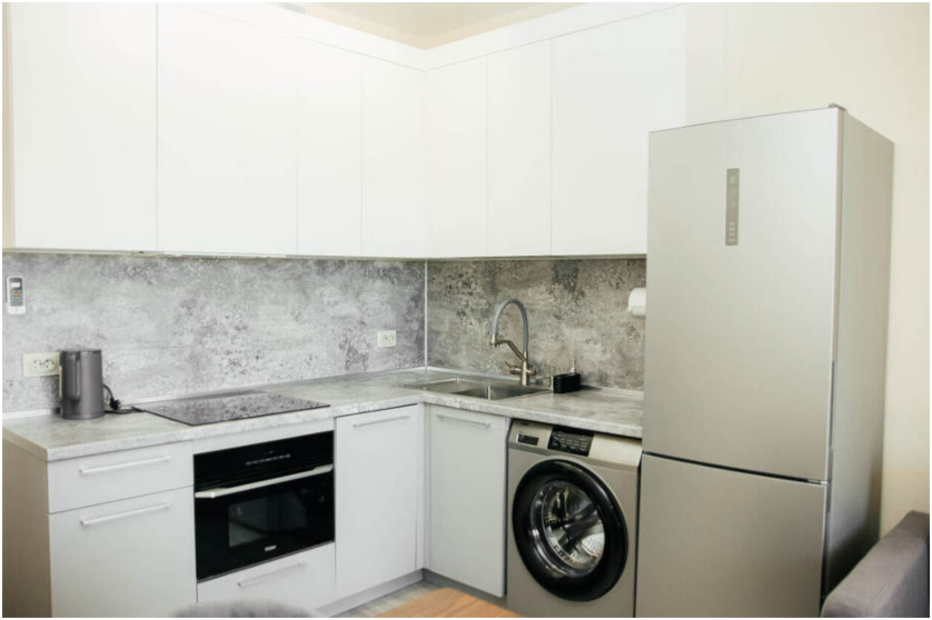 2 Кондиционера, 2 ТВ, посудомоечная машинка, стиральная машинка, микроволновая печь, плита, холодильник.
