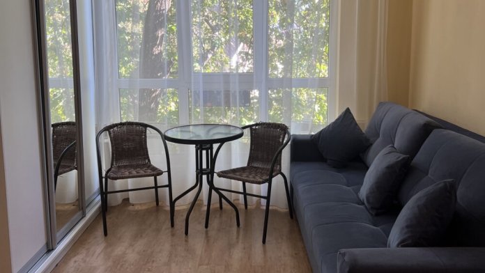 Сдаётся в современном доме квартира-студия в районе Дендрария в тихом, зеленом, новом микрорайоне. Все необходимое для пребывания в квартире есть (в т.ч. wi-fi). Сторона солнечная, уютная, с видом на море. Проведено интерактивное телевидение и интернет. До моря через территорию отельного spa-комплекса «Luciano» -15 мин., рядом сквер для прогулок с детьми, детская площадка, тренажеры, цирк, дендрарий. Сдается для отдыхающих с детьми, но без животных и некурящих.