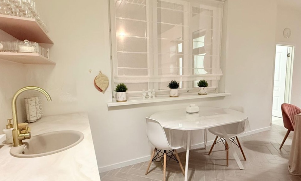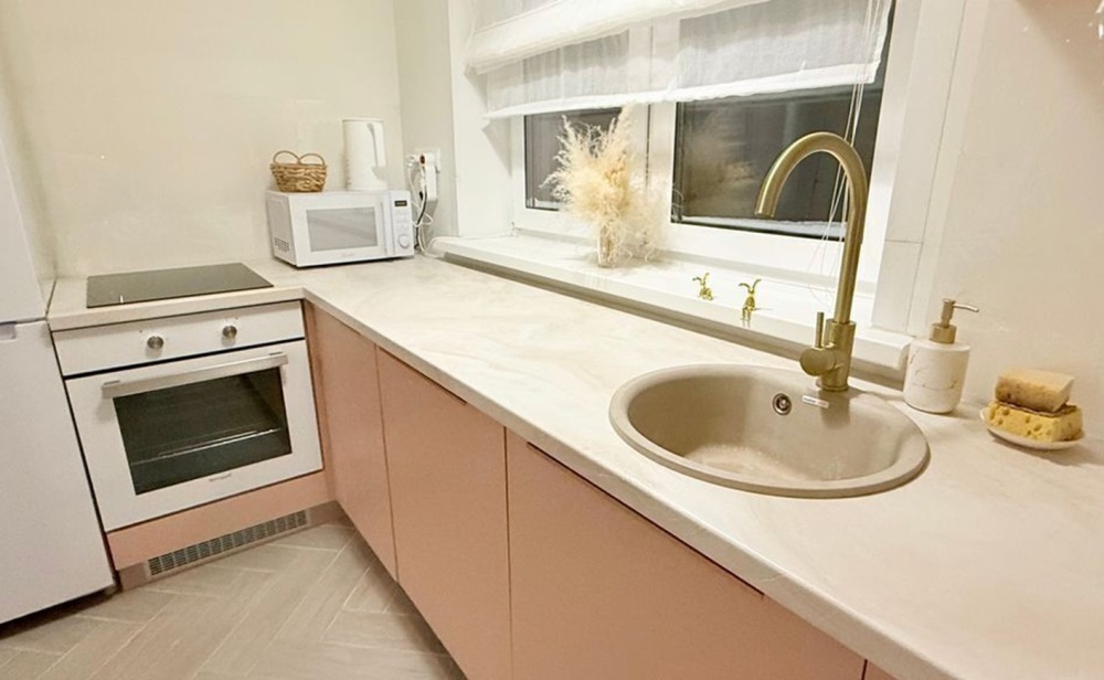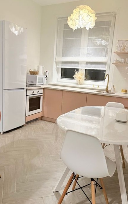 - кухонный гарнитур, холодильник, варочная панель, духовой шкаф, микроволновая печь, посудомойка, набор всей необходимой для праздников посуды (чай, кофе, соль, сахар всегда наличии)