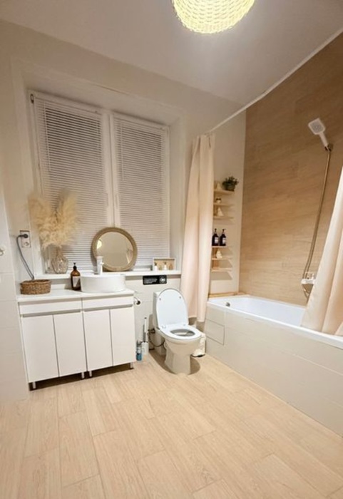 Запрещено ходить в доме в уличной обуви, везде тёплые полы и ходить можно хоть босиком.
