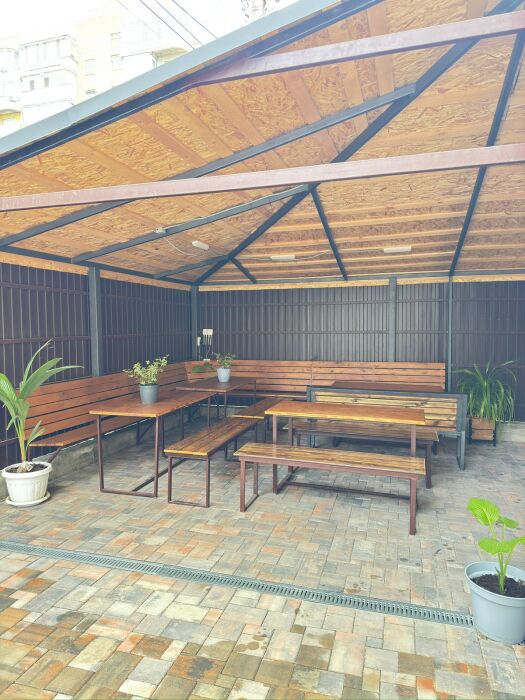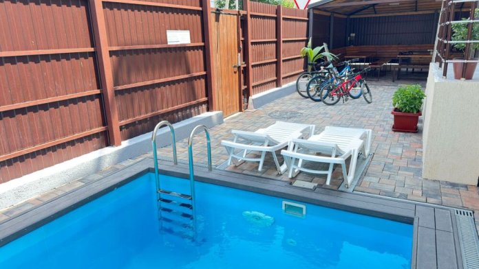 Гостевой дом «Добрая деревня» на территории: теплый бассейн, кухня, мангальная зона, территория отдыха, бесплатный Wi-Fi в каждом номере и на территории. Возможность приготовления блюд на мангале и на кухне общего пользования, на каждом этаже и во дворе есть кухня.