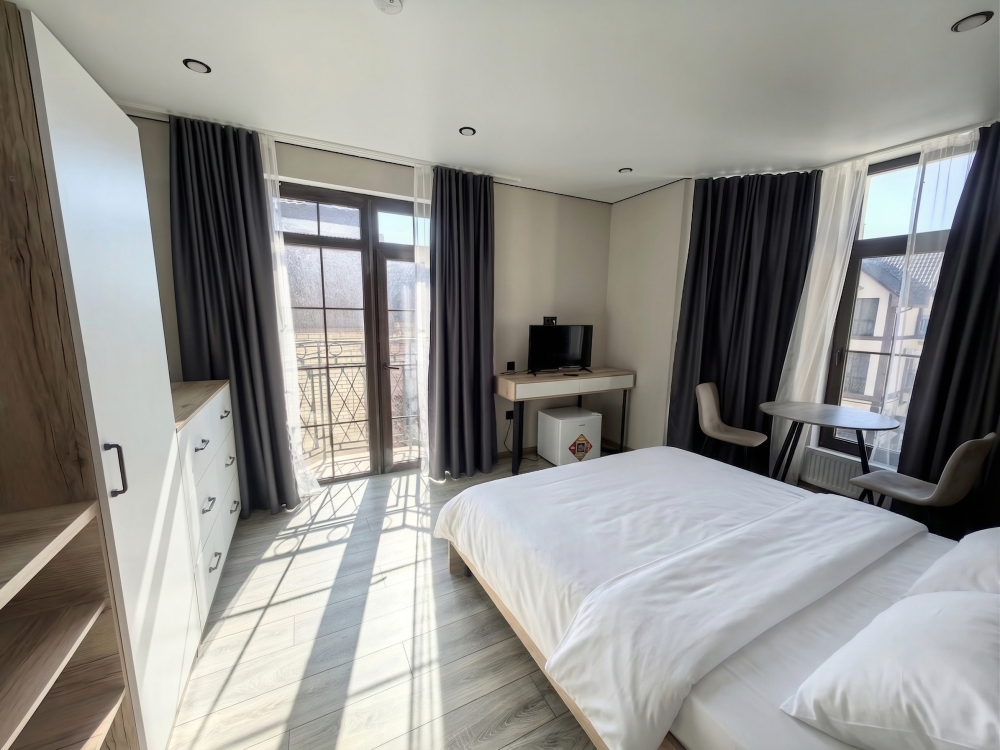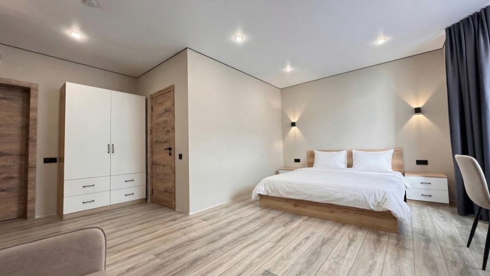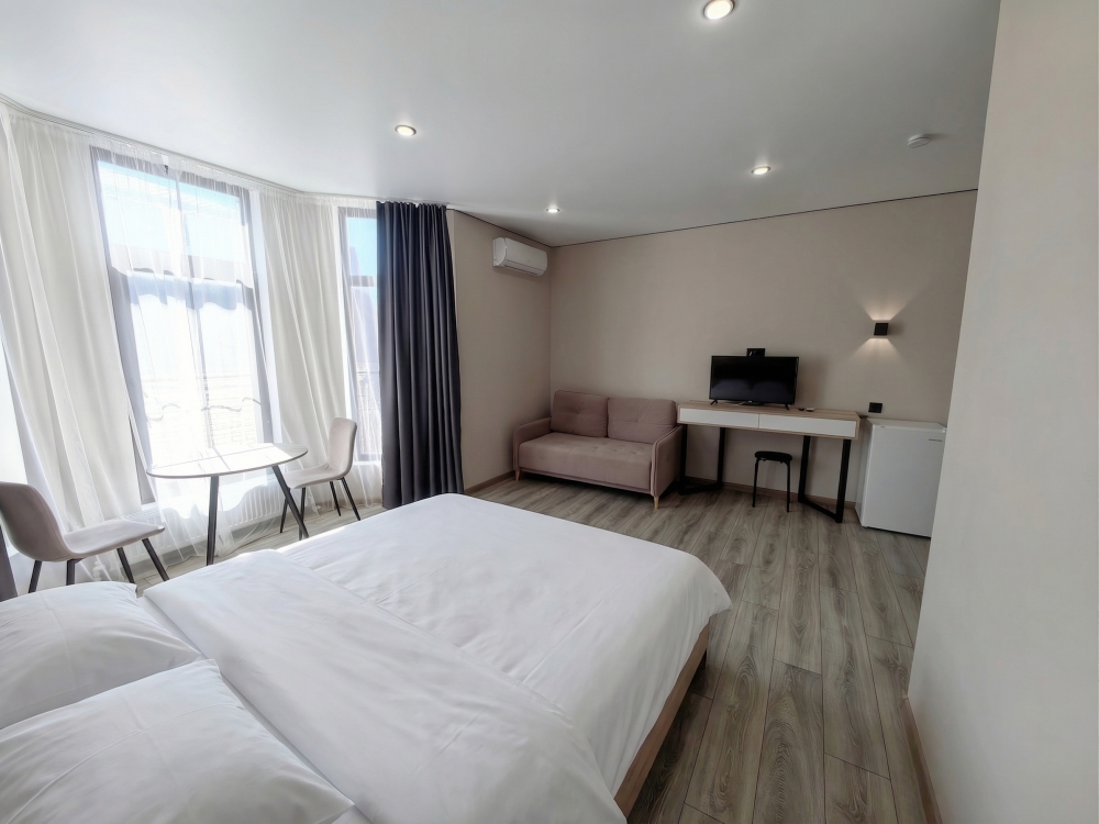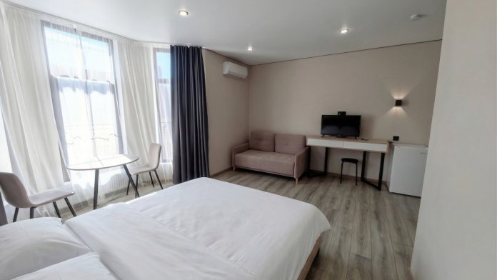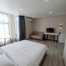 Мы предлагаем уютные номера различных категорий: двухместные, трехместные, четырехместные и семейные от 22 до 55 м2. Каждый номер преподносит своим гостям удобные кровати, свежее постельное белье, мягкие полотенца, комплект средств гигиены и фен для полного комфорта. Кроме того, номера оснащены душевой кабиной, сплит-системой, телевизор, холодильник, чайник.