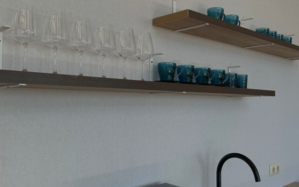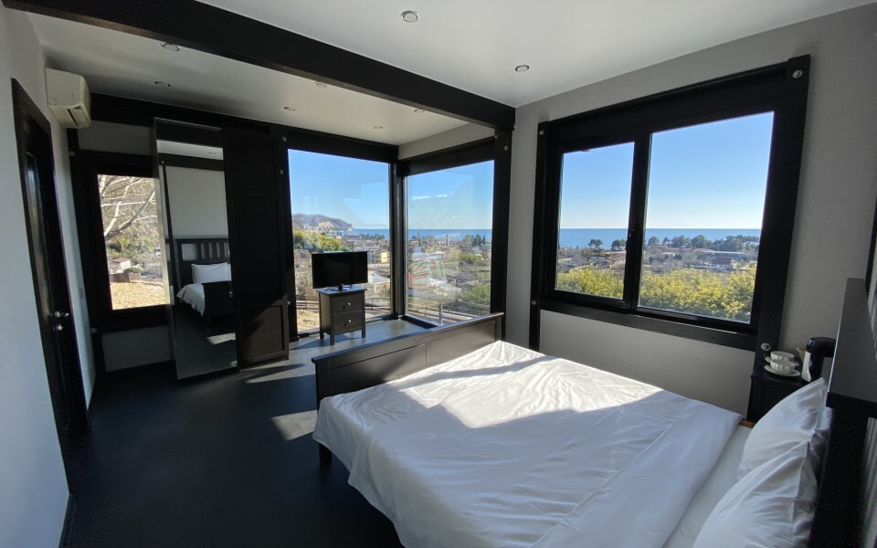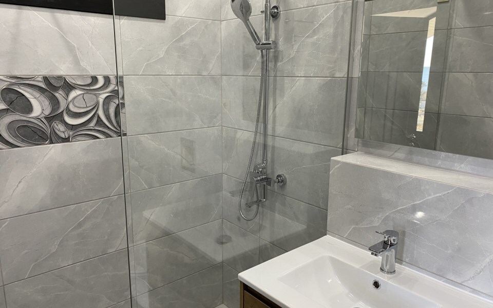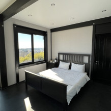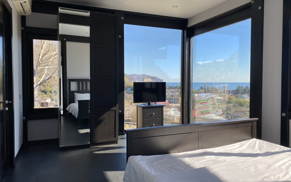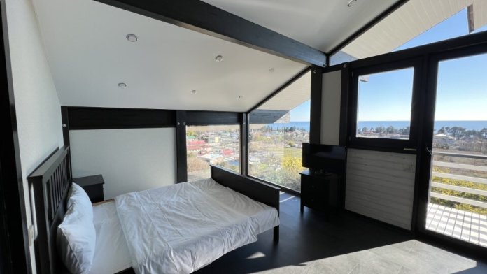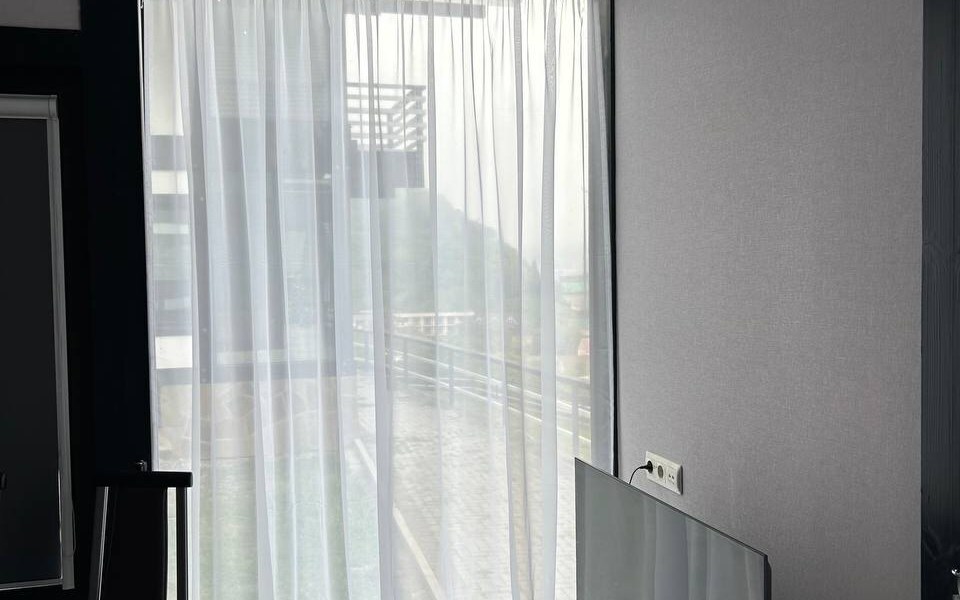 2 комфортные небольшие комнаты и гостинная-столовая зона с кухонным уголком. Панорамные окна на всю гостинную с таким же большим балконом и видом на море.