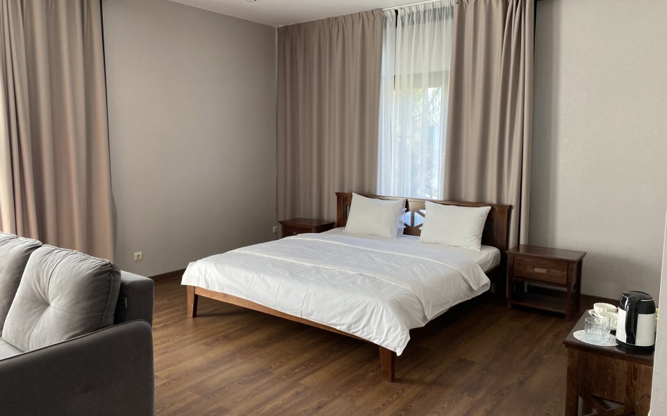 Также Вы найдете все необходимое для комфортного пребывания: ТВ, кондиционер, чайная станция, банные принадлежности.