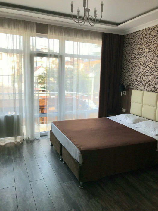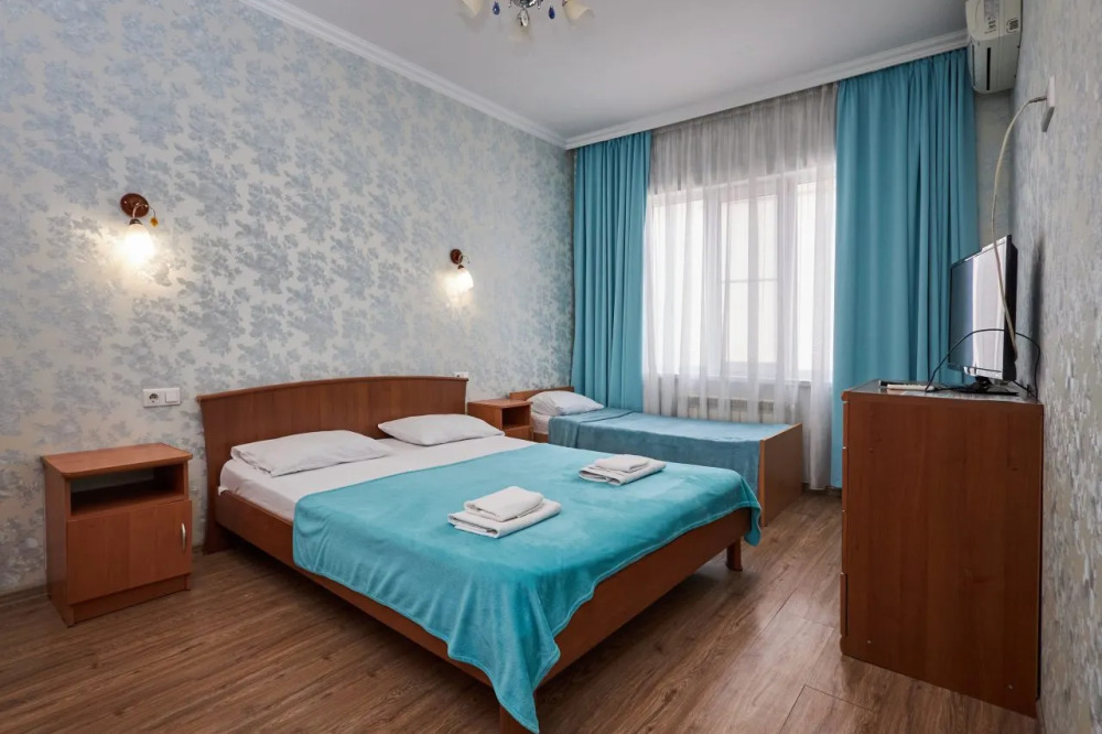Номер оснащен одной двуспальной кроватью или двумя раздельными кроватями и кресло-кроватью, шкафом для одежды, прикроватными тумбочками, журнальным или косметическим столиком, зеркалом.