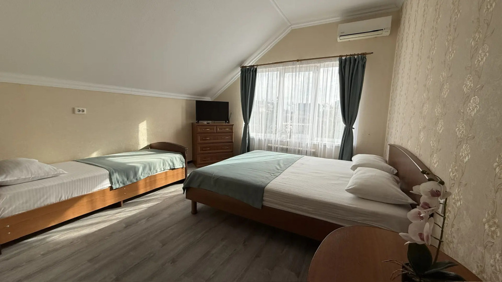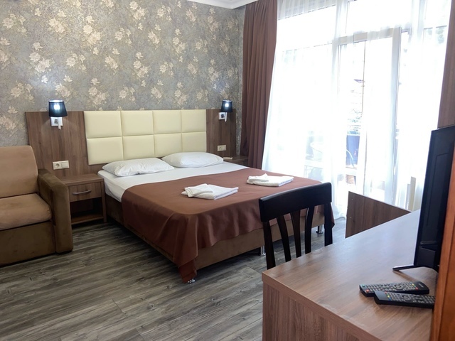 В номерах есть мягкая мебель, кондиционер, телевизор, Wi-Fi. В каждом номере - санузел с душевой кабиной. По запросу предоставляются утюг и гладильная доска.