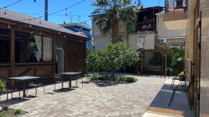 Рядом находится галечный пляж, где доступны водные аттракционы. В близи гостевого дома расположены кафе, столовые, рестораны.