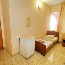 Номер оснащен всем необходимым: шкаф, стулья, тумбочки, вешалка. Размещение на односпальных кроватях или двуспальной кровати. В номере есть телевизор с цифровым ТВ, холодильник и кондиционер. Душ и санузел общие, расположены на этаже.
