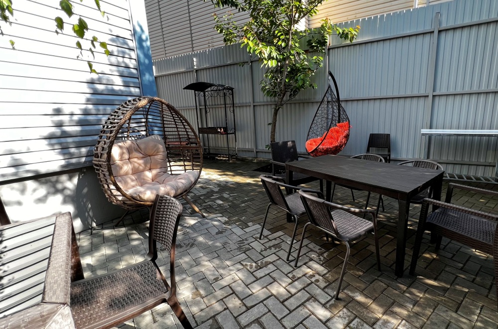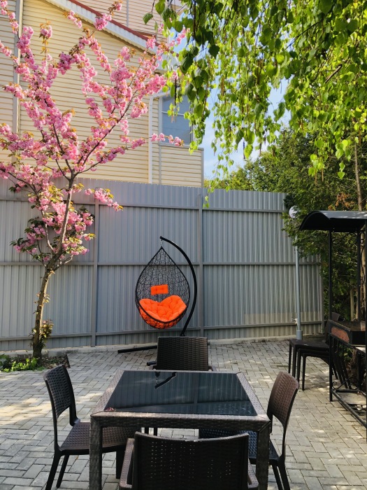 Однокомнатные апартаменты расположенные на 1 этаже 3-этажного коттеджа с двориком с мебелью и мангалом. Апартамент расположен на закрытой охраняемой территории коттеджного поселка в 500 метрах от моря. Парковка, детская площадка на территории.