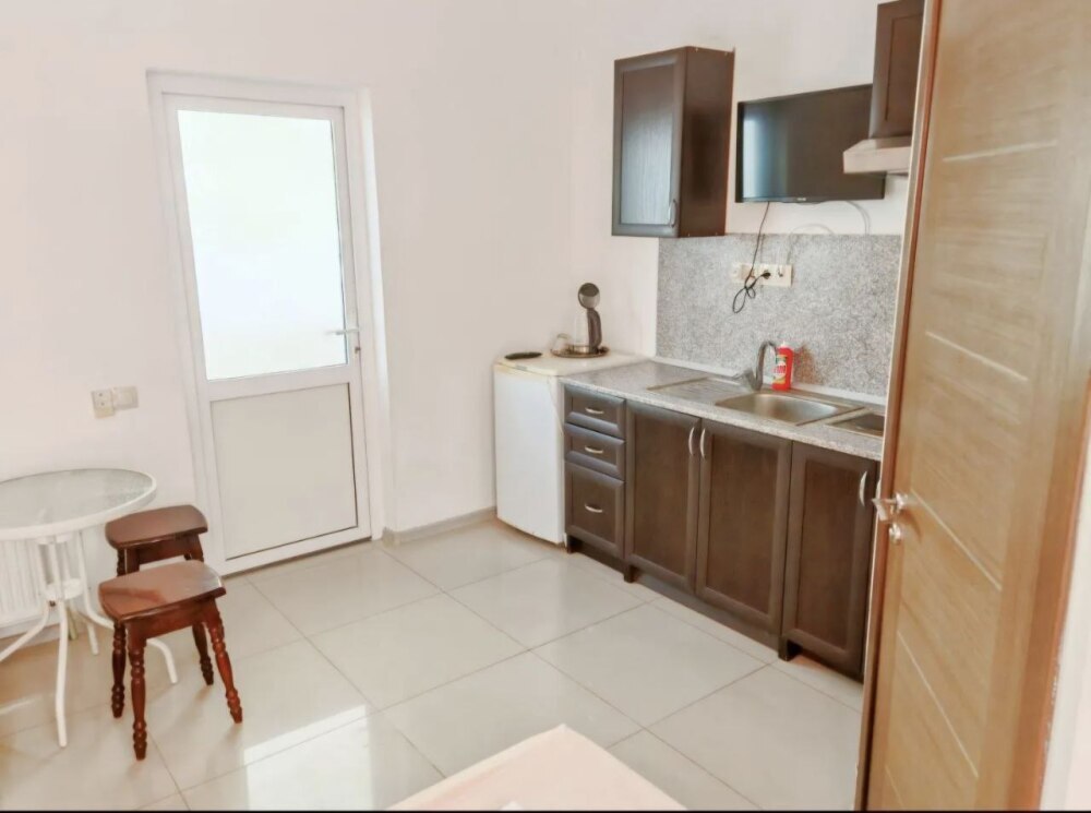 Для приготовления домашних блюд гостям предлагается готовить на общей кухне, оборудованной техникой. Имеется мангальная зона, которой также можно воспользоваться. Есть небольшая детская площадка и каркасный бассейн.