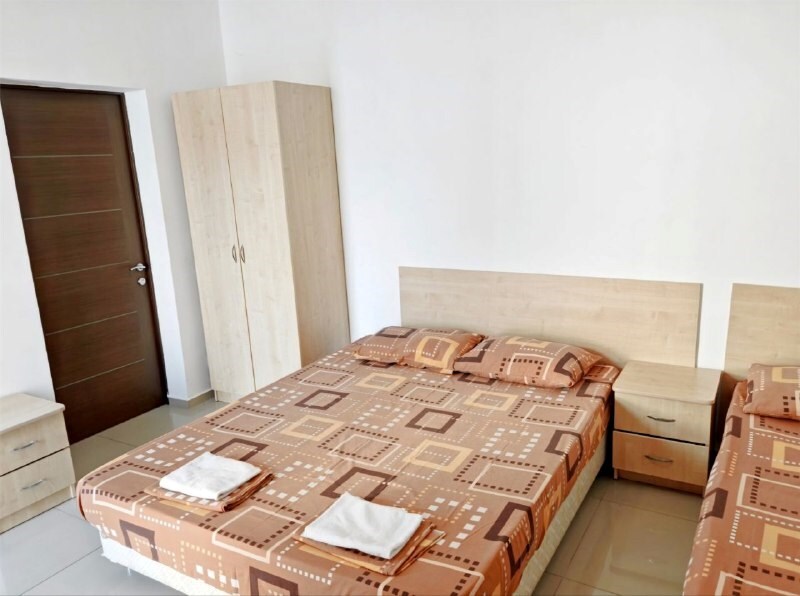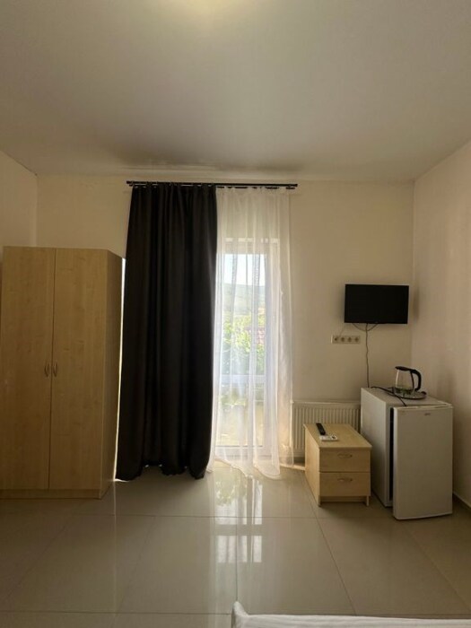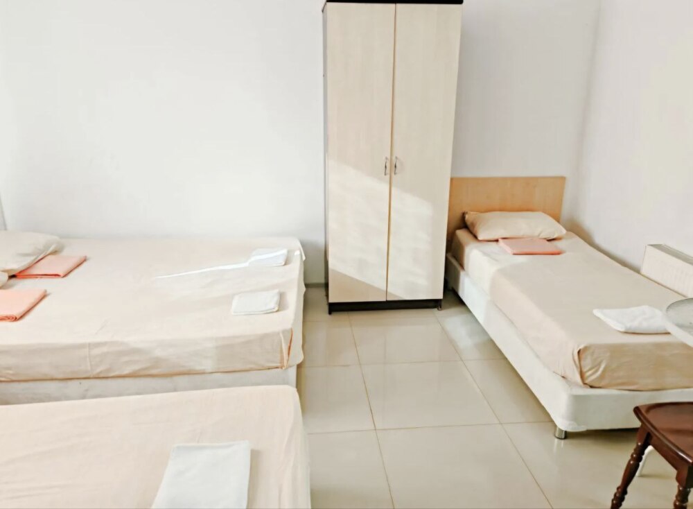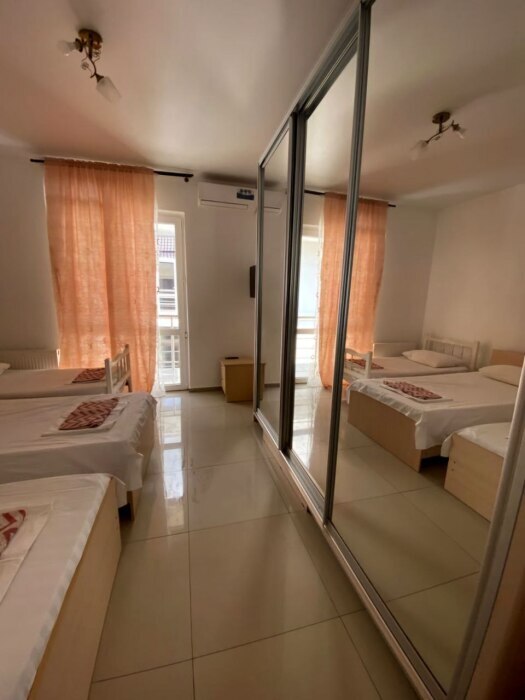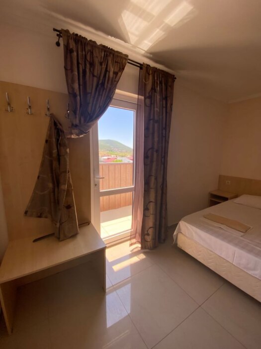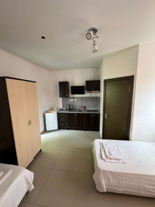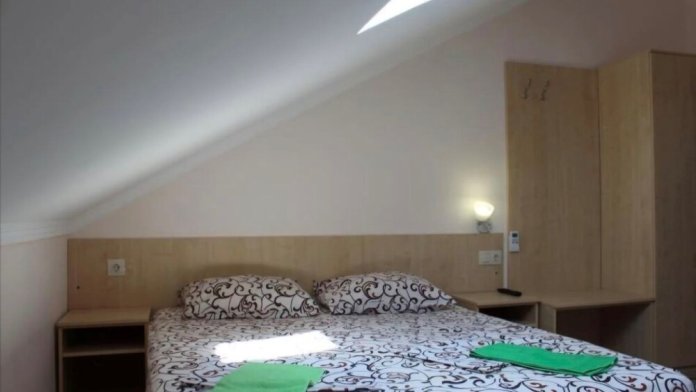 В номере — одна двуспальная кровать и 2 односпальных, холодильник, сплит-система, телевизор, ванная комната с душевой кабиной, своя кухонная зона. Номера расположены на 2 и 3 этаже.