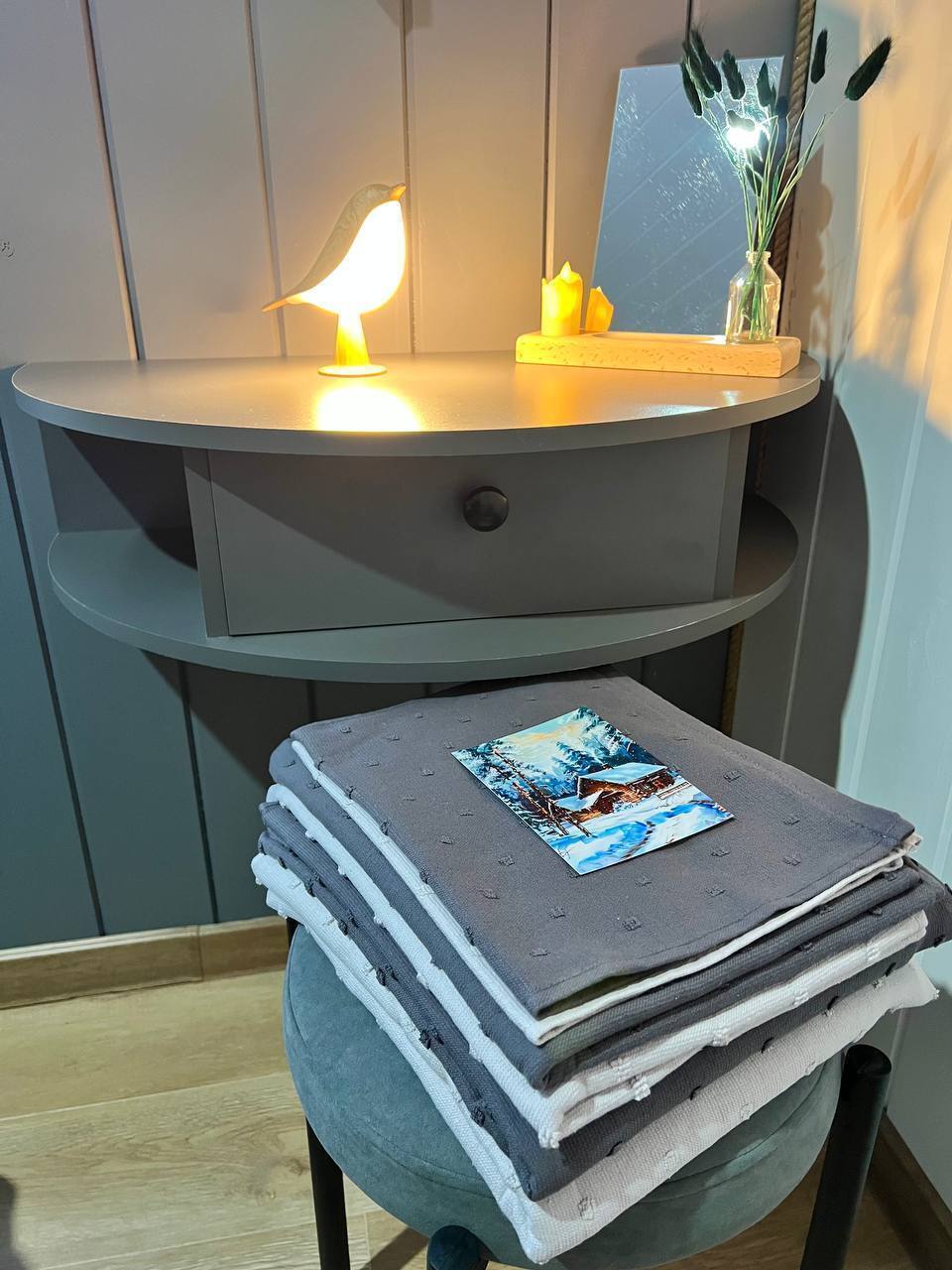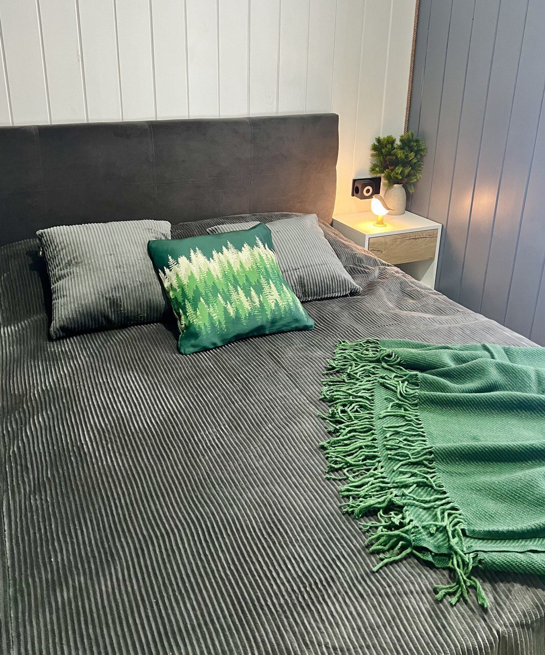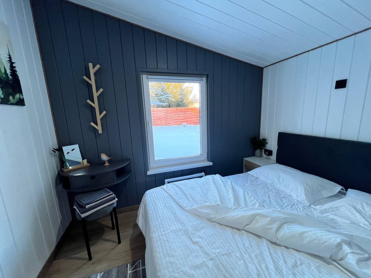 - Две уютных спальни с двуспальными кроватями 160х200 с ортопедическим матрасом, постельным бельем, шторами блэкаут, косметическим столиком с зеркалом;