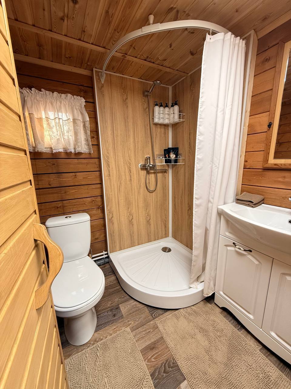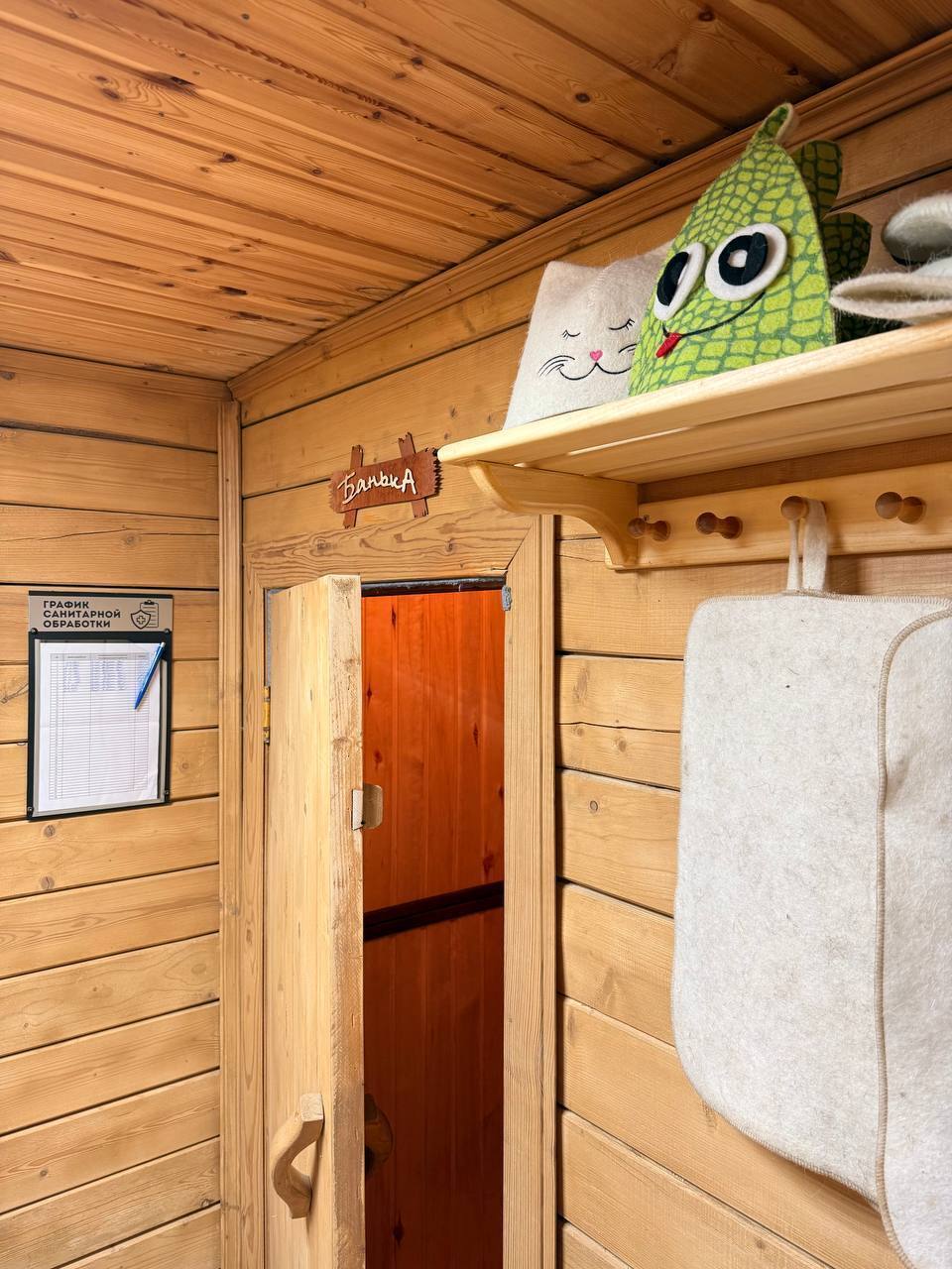 - Шкаф для размещения личных вещей (в шкафу вы сможете найти флисовые пледы и резиновые тапочки для комфортного пребывания на улице).