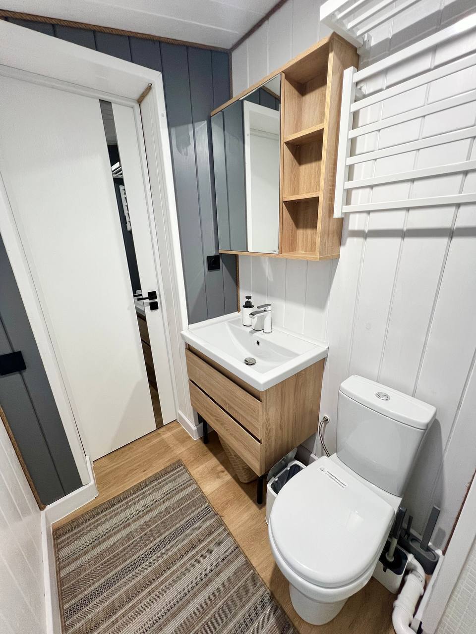 - Санузел с душем и тёплым полом;