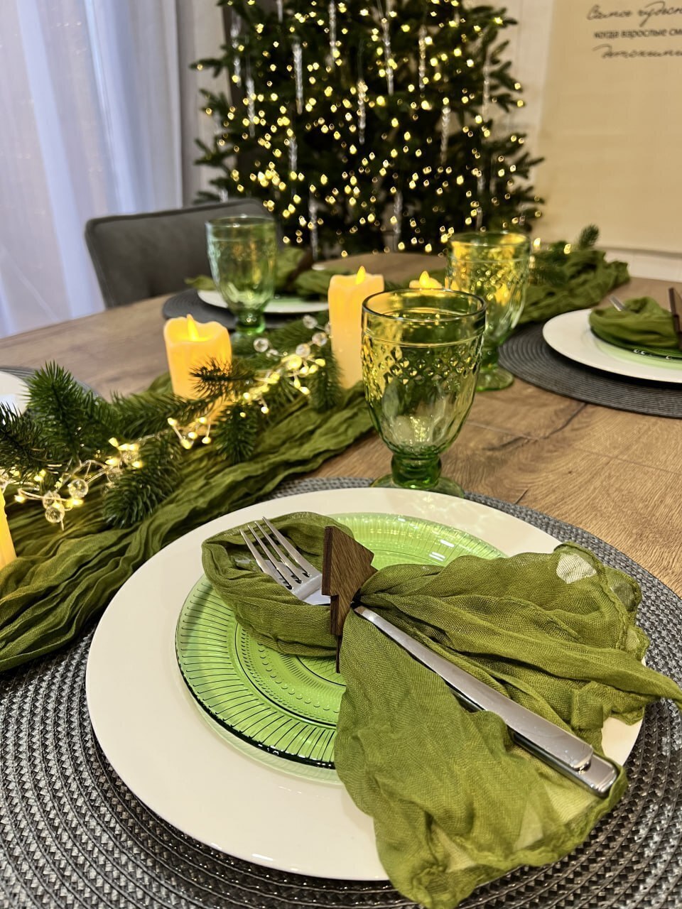 - Тарелки и миски разных размеров, несколько видов бокалов, кружки, стаканы, чашки, салатники, утятница, салфетки, все необходимые столовые приборы: вилки, ложки, ножи - все, что вам может понадобится для сервировки праздничного стола;