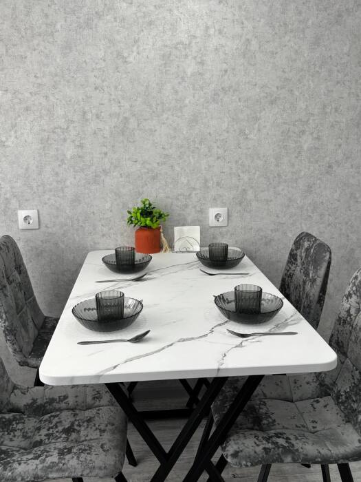 -️ посуда для приёма и приготовления пищи на 4 персоны. Тарелки глубокие и плоские, салатник, кружки на каждого гостя;
