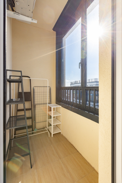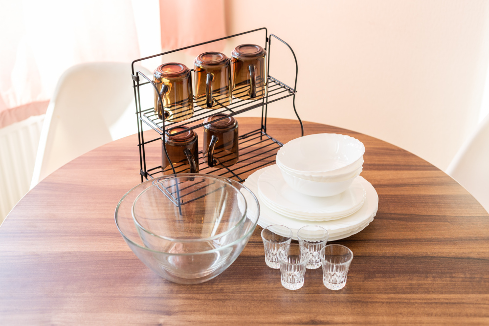 Внутри - всё для удобства и уюта. Просторная зона отдыха с диваном и ТВ, обеденная зона у окна, полноценная кухня с техникой и посудой. Большие окна наполняют пространство светом, создавая приятную атмосферу. Есть кондиционер и стиральная машина, что делает проживание ещё комфортнее.