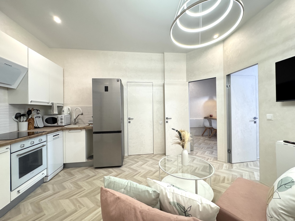 - Просторные апартаменты с 2 изолированными спальнями и кухней-гостиной бизнес-класса с дизайнерским ремонтом;