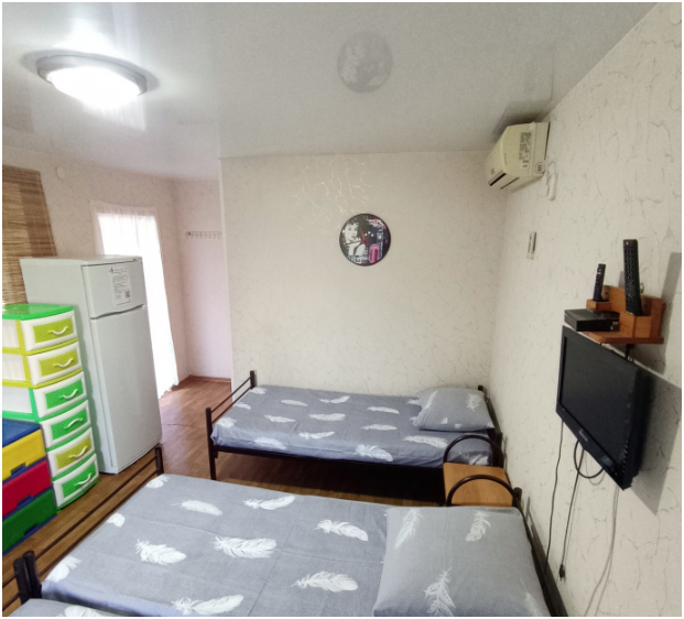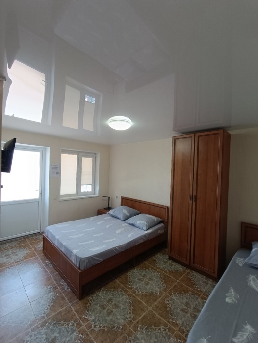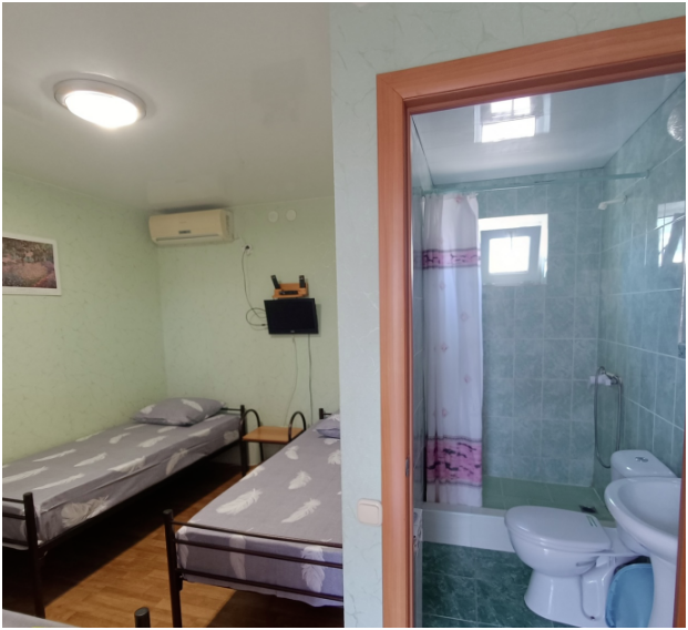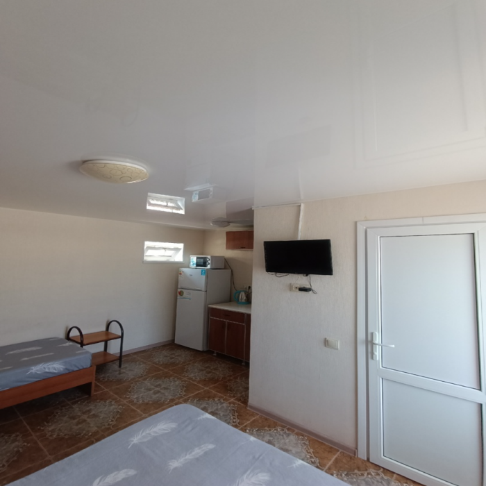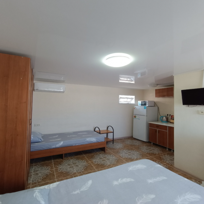 Мы предоставляем разное жилье на выбор: уютные комнаты с санузлом и душем и студии. Для комфортного отдыха возможно проживание в комфортабельных студиях со всеми удобствами для семьи из 3 человек. При необходимости предоставляем раскладушку для проживания семьи из 4 человек. В номере кухня, душ, санузел, сплит-система, телевизор. Кухня оборудована всем необходимым: холодильник, электрочайник, плита, посуда.