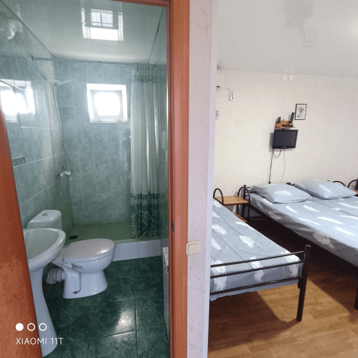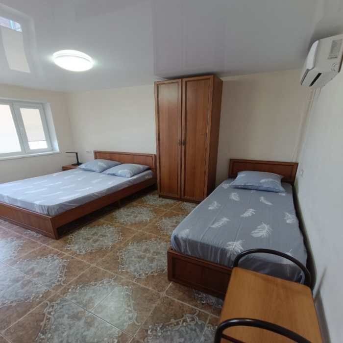 Также предлагаю благоустроенные номера эконом-класса со всеми удобствами. В номере душ, туалет, телевизор, сплит-система. Общая кухня полностью оборудована: вся необходимая мебель, посуда, 3 больших холодильника. Предоставляется Wi-fi.