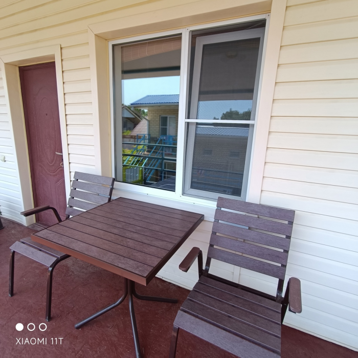 На территории расположены два гостевых дома, которые разделяет просторный двор, где могут играть дети или загорать на шезлонгах взрослые, пока дети спят. Гостевой дом расположен в курортном районе центрального пляжа на тихой не проездной улице. Район спокойный и безопасный. В шаговой доступности магазины (один из которых круглосуточный), кафе и домашняя кухня, остановки автобусов, аптека, овощные ларьки.