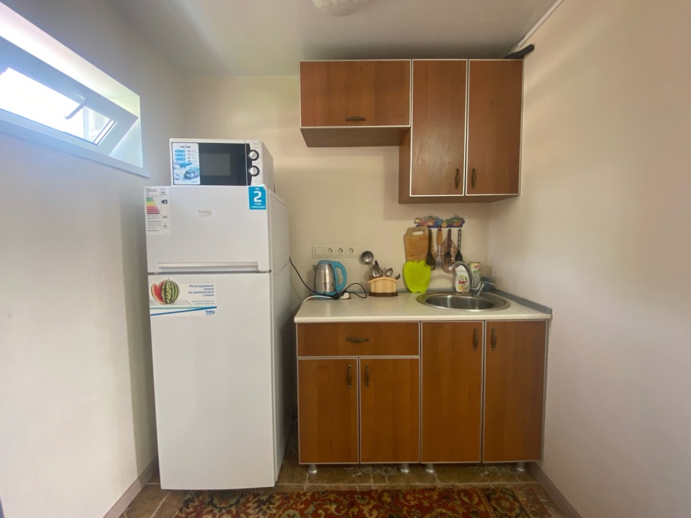 Кухня общая расположена на 1-м этаже гостевого дома и оснащена всем необходимым для приготовления и приема пищи. Гладильные принадлежности и фен на кухне. Стираем в стиральной машине. Стирка 200 руб.