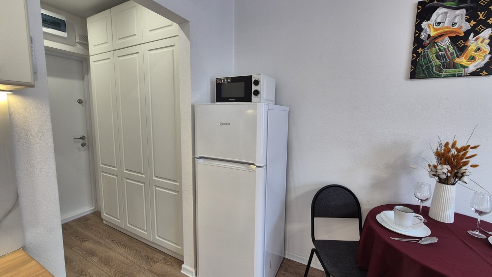 - Холодильник, плита, микроволновая печь, чайник, стиральная машина