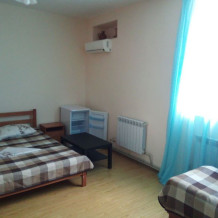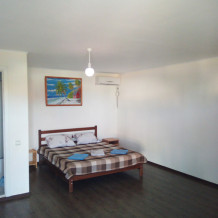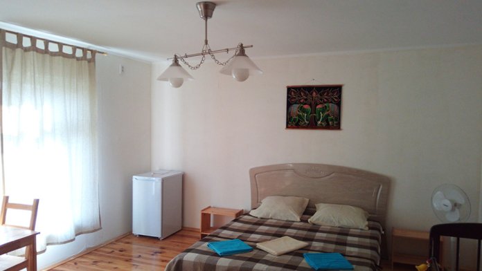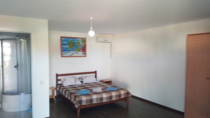 Гостевой дом располагает номерами с 2,3 и 4-местным размещением. Во всех номерах: туалет, душ, умывальник, холодильник, кондиционер, кровати, стол, стулья, шкаф. Кровати очень удобные, новые ортопедические матрасы. Комнаты просторные, светлые. Горячая вода - круглосуточно, также есть большая уютная столовая. Индивидуальное меню идёт за дополнительную оплату. Есть возможность самостоятельной готовки. Имеется большая территория для детей. На территории детский спортивный уголок, качели, батут, настольный теннис, беседки для взрослых, камин, барбекю, бесплатный Wi Fi. Рядом есть рынок со свежими фруктами, овощами, продуктовые магазины.