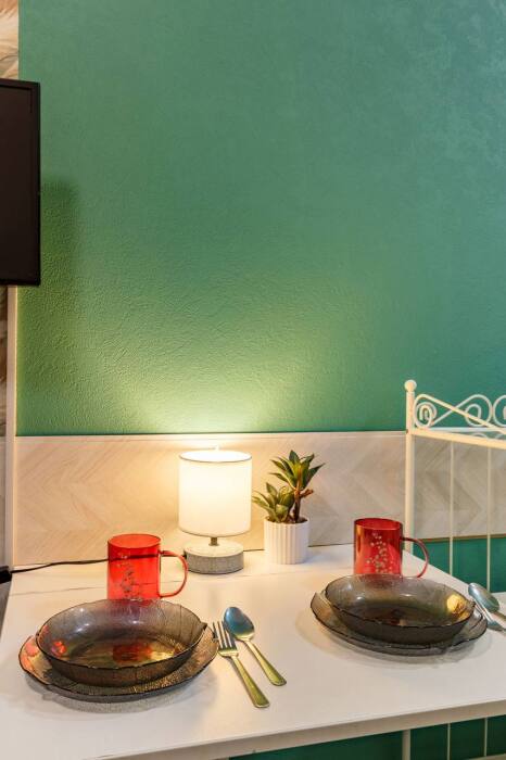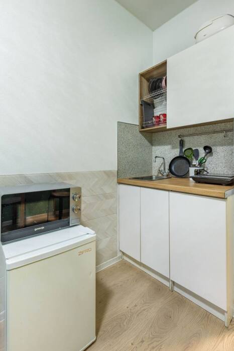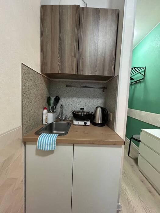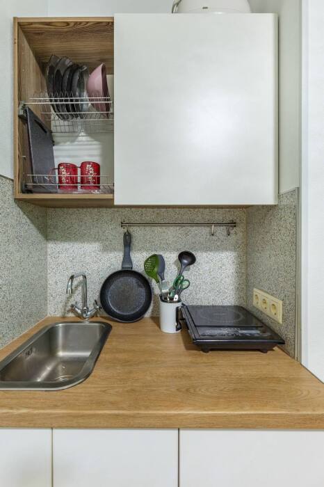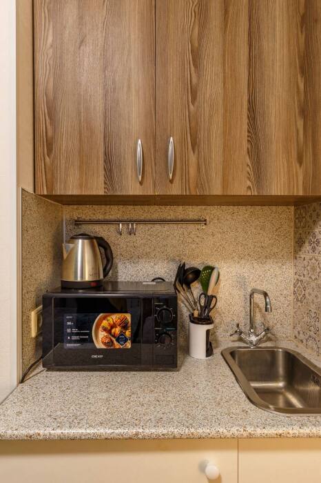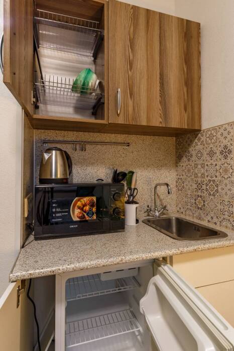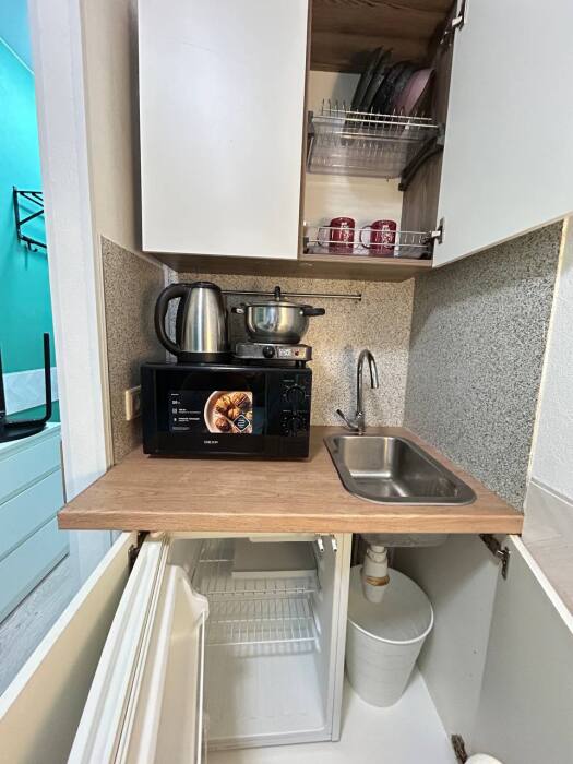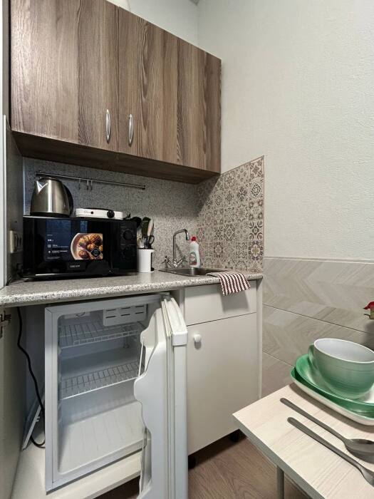 -️ кухня с посудой + варочная плитка, мультиварка, чайник, мультиварка, микроволновка, мини - холодильник;