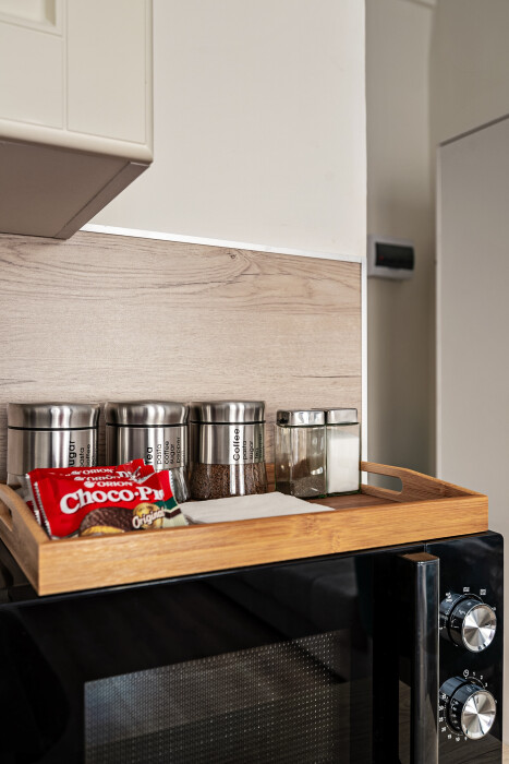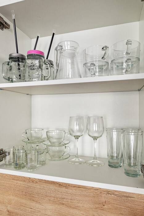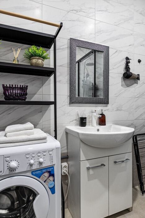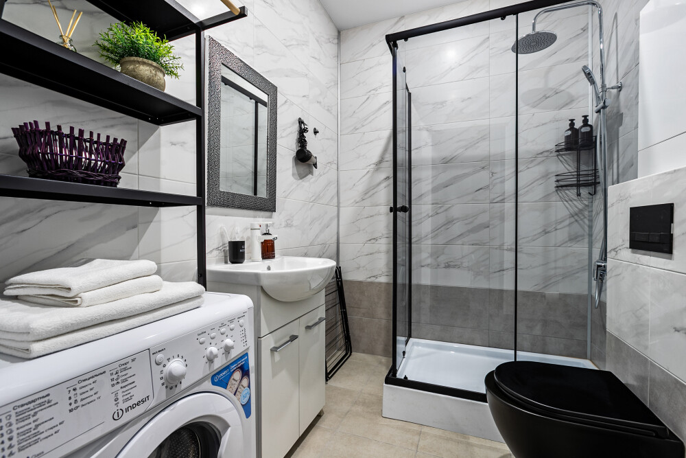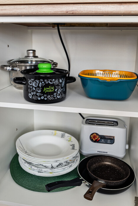 - различные бытовые мелочи: высокоскоростной Wi-Fi, душевая кабина, стиральная машина, фен, утюг, полный комплект посуды.