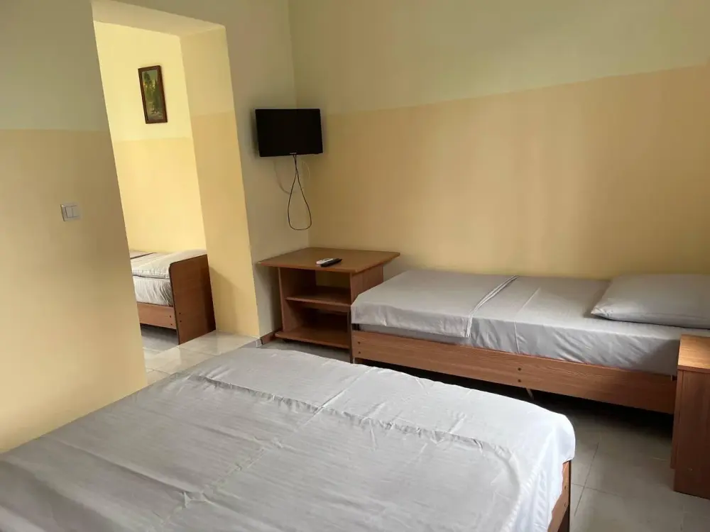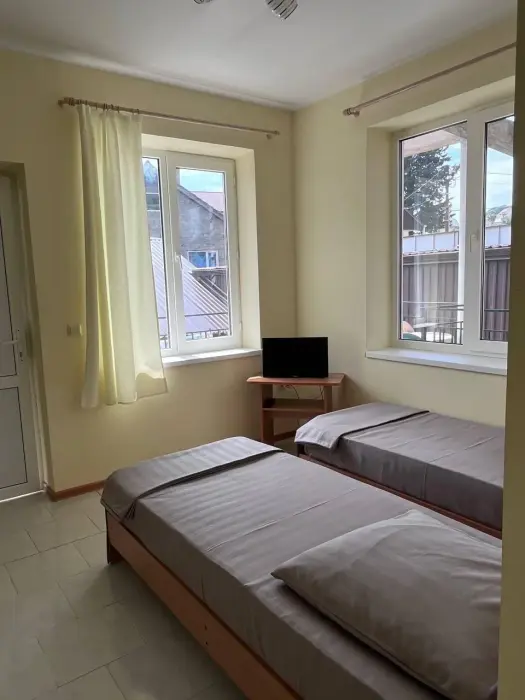 Для проживания гостям предлагаются 11 уютных комнат различных категорий и вместимости и два Домика Комфорт с собственной кухней, оборудованные всем необходимым для комфортного проживания. В комнатах: комфортабельные спальные места, комплект мебели, телевизор, кондиционер, санузел с душем и туалетом.