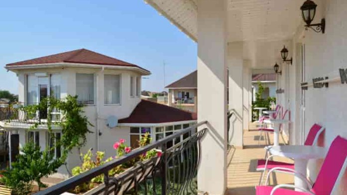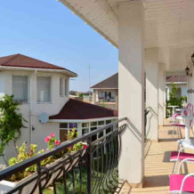 Территория гостевого дома закрыта для посторонних. Внутренний двор радует глаз свежим зеленым газоном, яркими цветочными клумбами, экзотическими растениями.