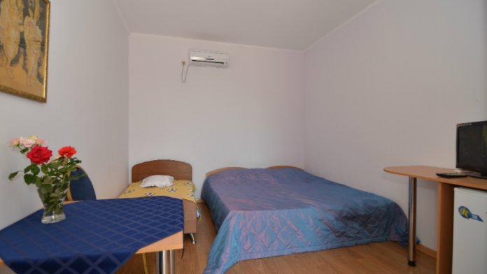 Гостевой дом предоставляет отдыхающим номера для размещения двух, трех, а также четырех человек. Номера оборудованы телевизором, кондиционером, холодильником, чайником. Условия размещения соответствуют современным стандартам качества. Уборка в номере по требованию. Смена полотенец раз в три дня, смена постельного белья раз в пять дней.