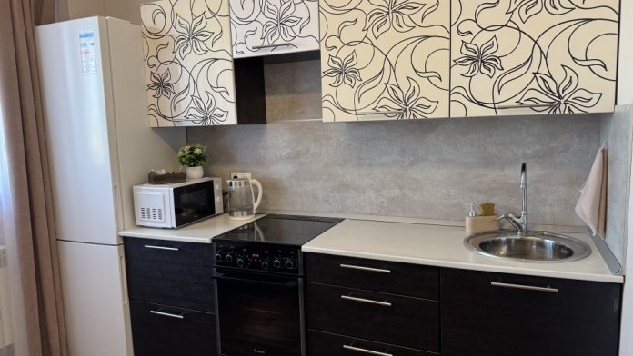 Наша квартира оформлена с особым вниманием к деталям. Функциональная кухня, кастрюли разных размеров, сковорода, у нас есть все кухонные принадлежности от терки до ложки.