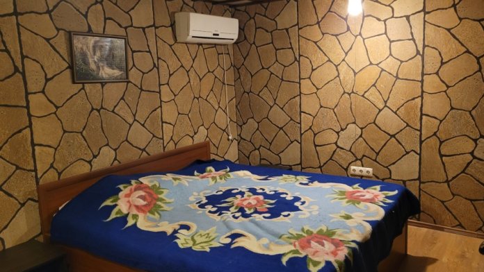 В одном комнате двухспальная кровать и кондиционер. В другой комнате две односпальные кровати, спутниковое телевидение, Wi-Fi, часть комнаты занимает кухня, холодильник, двухкомфорочная плита, микроволновая печь, посуда. На втором этаже находится стиральная машина, раковина для мытья посуды, туалет и душевая кабина.