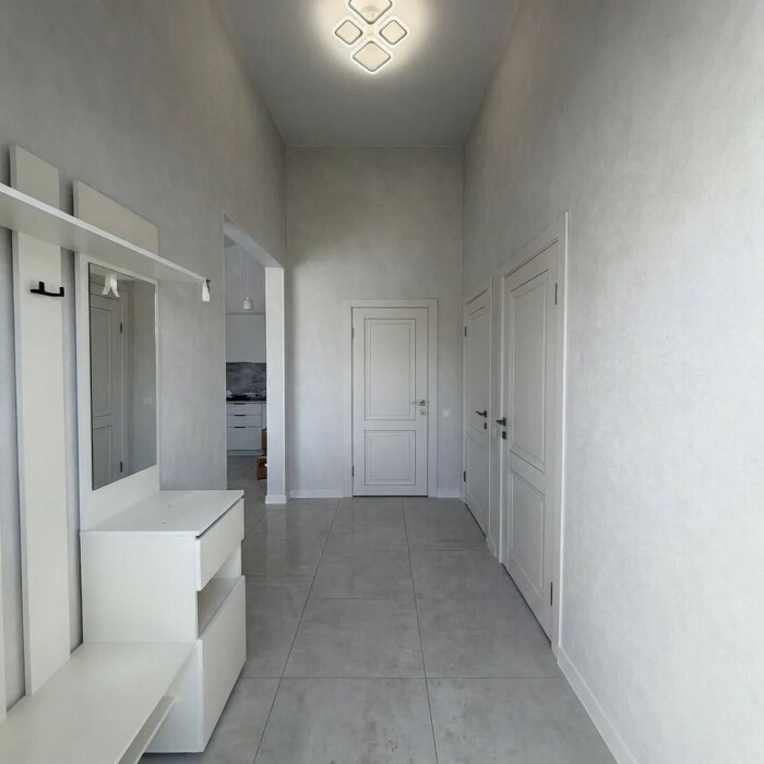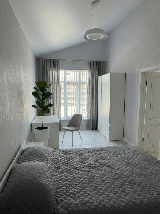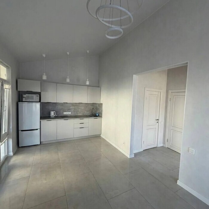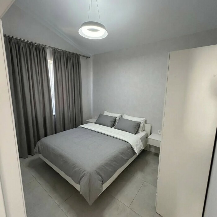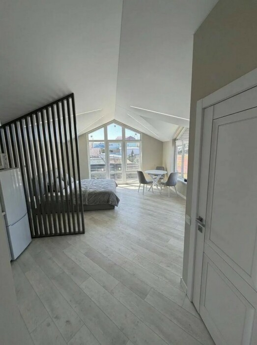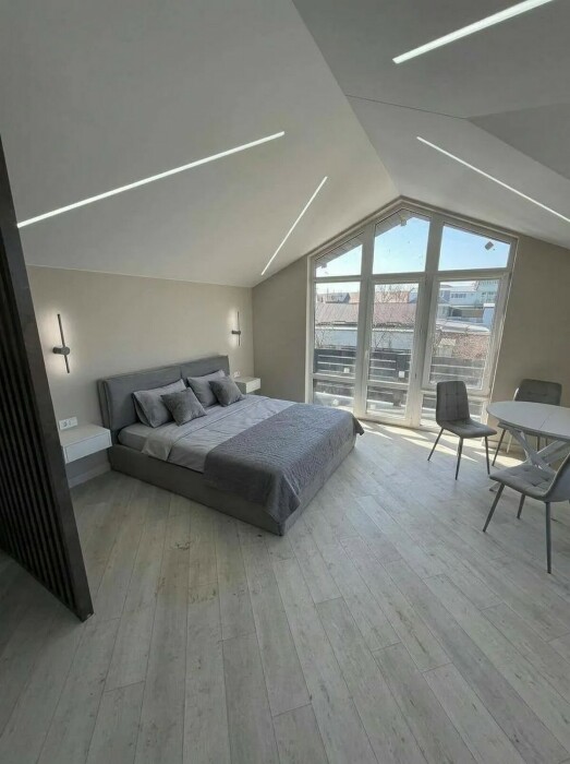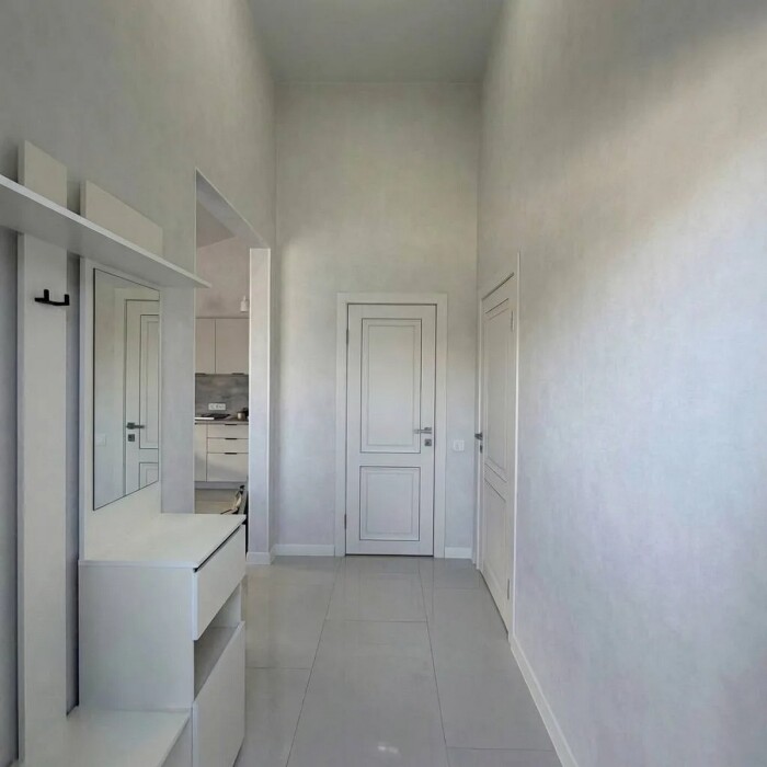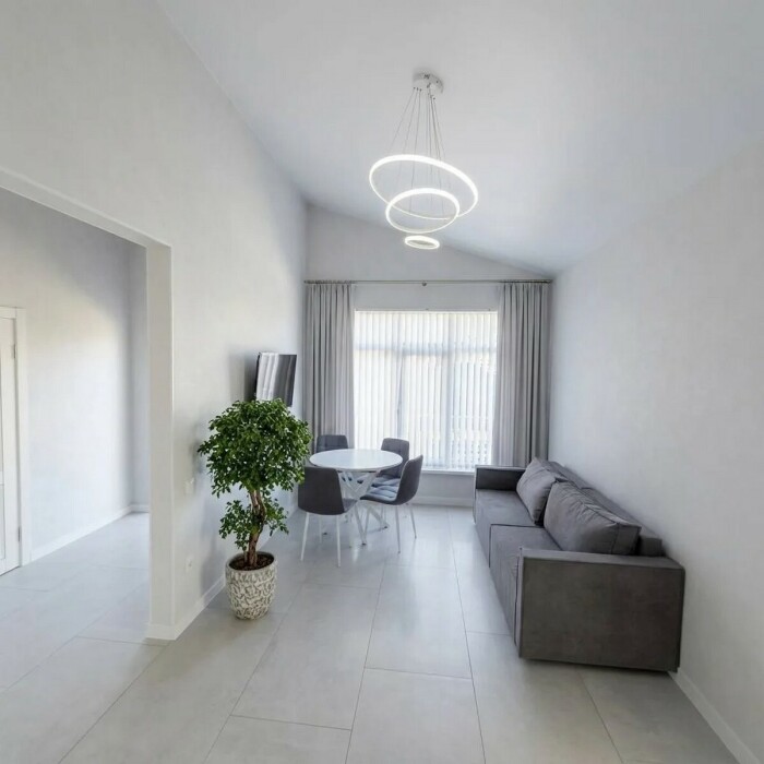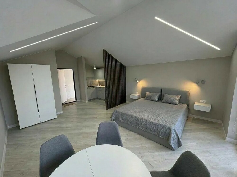 Имеется телевизор, кондиционер, вентилятор, фен, шкаф, вешалка, зеркало, обеденный стол, рабочий стол, журнальный столик, стулья.