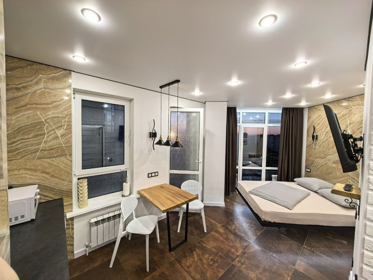 Современная квартира «Пляж». В шаговой доступности ТЦ Форум, ТЦ Сфера, ТЦ Оскар, ВИПЭ, несколько салонов красоты, спортивные клубы, стадион Витязь, бассейн, Мировые судьи, магазины и кафе.