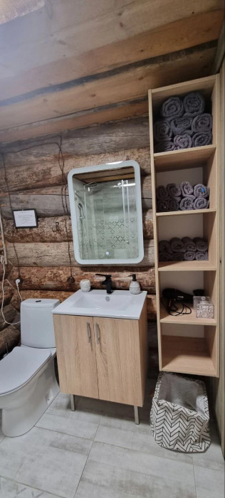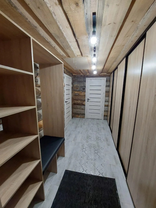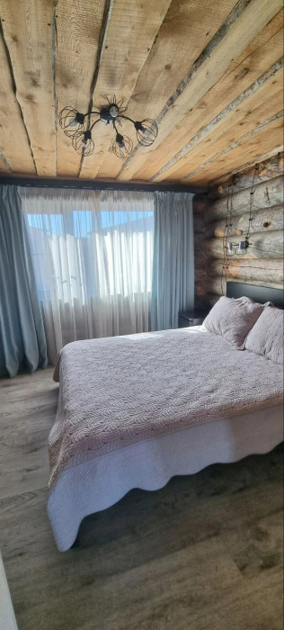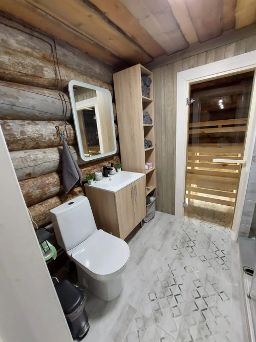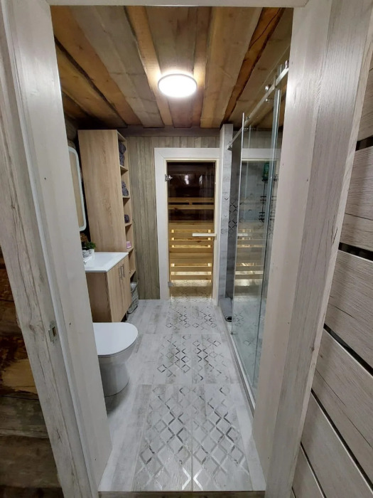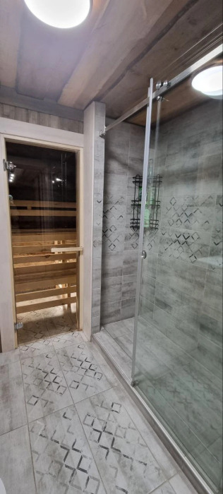 На первом этаже расположены две спальни с двуспальными кроватями, душ и электрическая сауна.