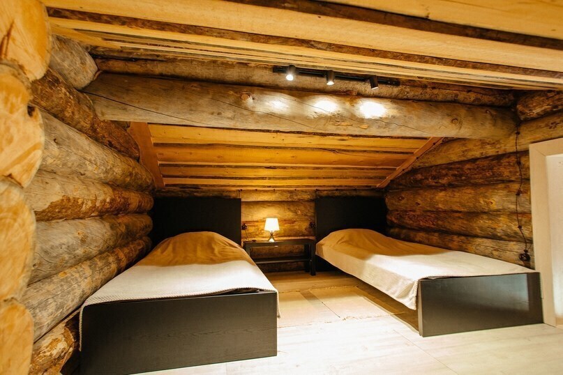 Еще одна спальня с двумя кроватями расположена на втором этаже.