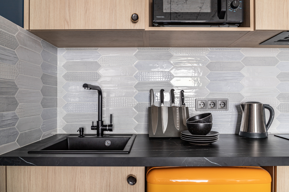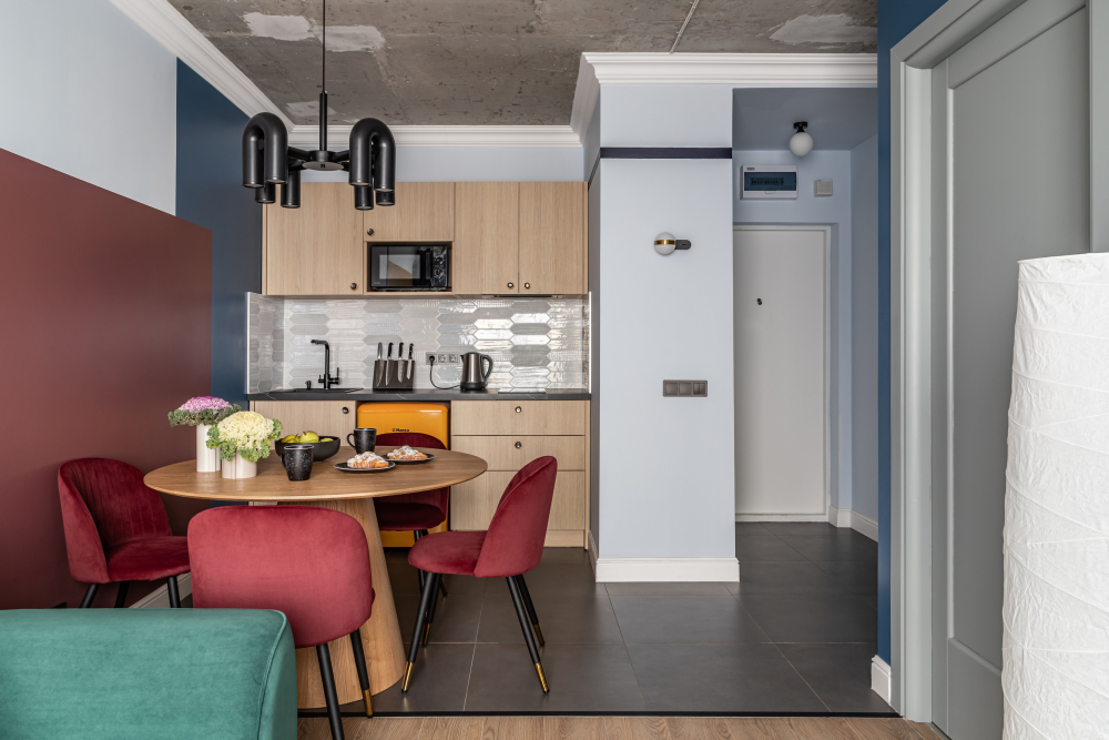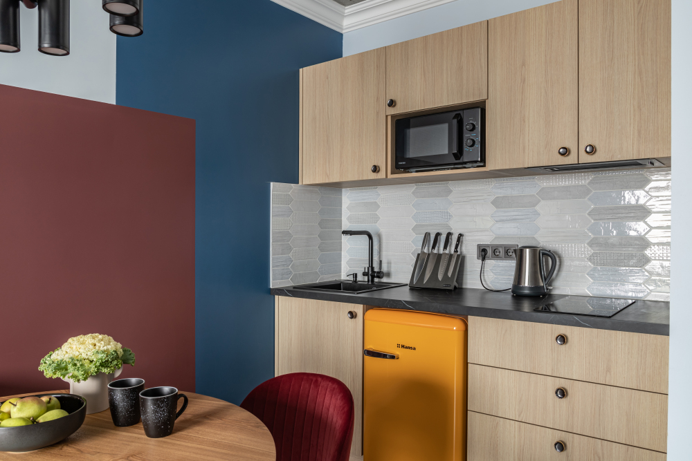 Комфортная кухня со всем необходимым для приготовления еды.