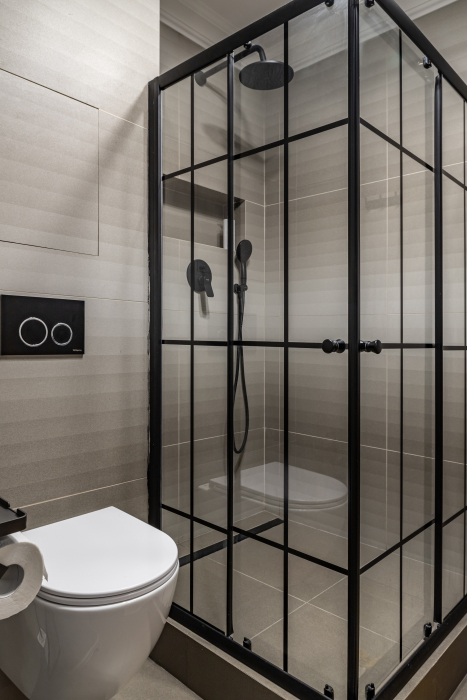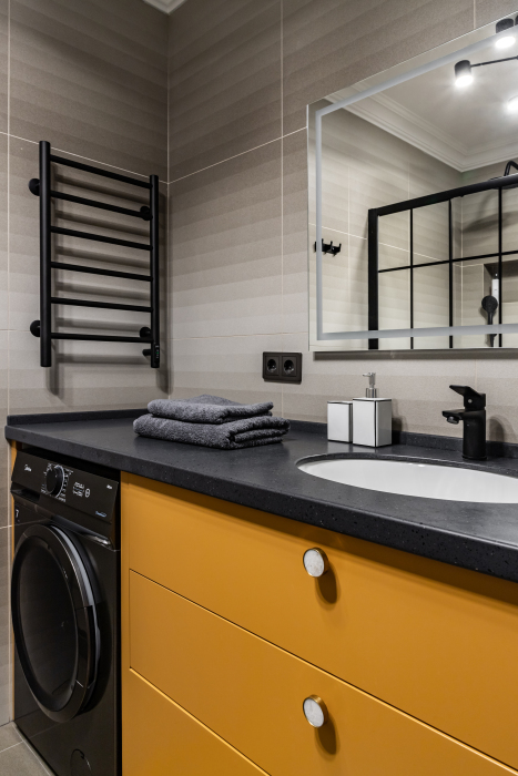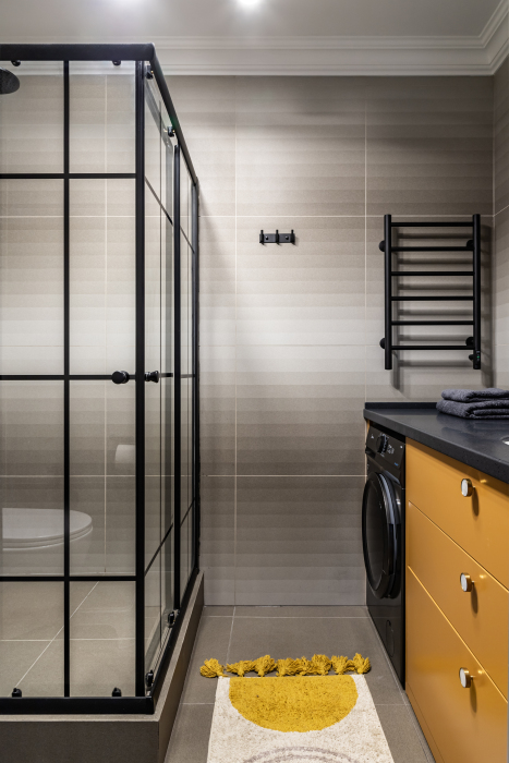 - ванная комната с душевой кабиной со стиральной машиной;