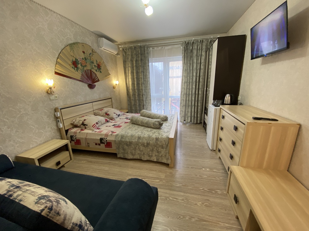 двухкомнатный семейный люкс - две раздельные комнаты, два телевизора, холодильник, два кондиционера, два шкафа, четыре тумбочки, два стола и все необходимое для отдыха