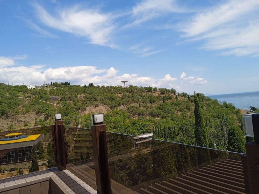 Терраса. Вид на море, горы, кипарисы.