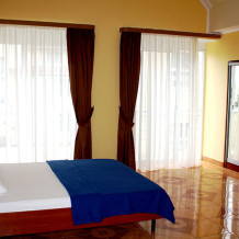 Размещены в трехэтажных корпусах. Один большой номер, при взгляде с террас которого, возникает ощущение присутствия на корабле, бороздящем морские просторы. Номер с видом на море и горы.
