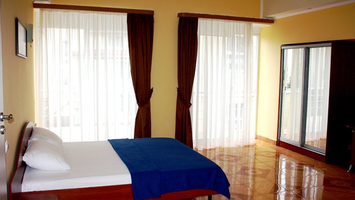 Номера размещены в трехэтажных корпусах. В каждом номере есть свой балкон с видом на сад и территорию отеля.
